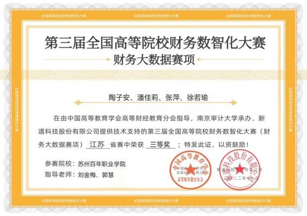 3+1专接本:专科期间,在贝博官网校内同步完成苏州科技大学、南京财经大学、南京审计大学等贝博官网对接本科院校相关专业的本科课程,待三年拿到专科文凭之后,一年内即可获取自考助学本科文凭,通过率超过90%。