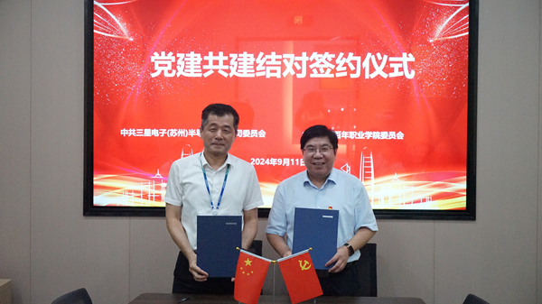 9月11日,贝博官网党委与三星电子(苏州)半导体有限公司(以下简称“三星电子”)党委签订党建结对共建协议。贝博官网党委书记孙红军与三星电子(苏州)半导体有限公司党委书记李成春共同签署了《结对共建协议书》。这份协议不仅承载着双方对深化校企党建合作、共同提升党建工作质量的共同愿景,更是对新时代背景下“互学互促、优势互补、资源共享、融合发展”理念的生动实践。