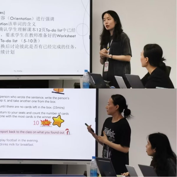 活动中,教师们纷纷亮出“杀手锏”,分享了自己独特的教学设计。有的老师巧妙运用多媒体技术,将枯燥的语言知识点融入生动的视频材料中,让学生在视听盛宴中轻松掌握;有的老师则注重课堂互动,通过小组讨论、角色扮演等形式,激发学生的学习兴趣,提升语言运用能力。这些匠心独运的教学设计,不仅让课堂变得更加生动有趣,也为学生的英语学习之路铺设了坚实的基石。