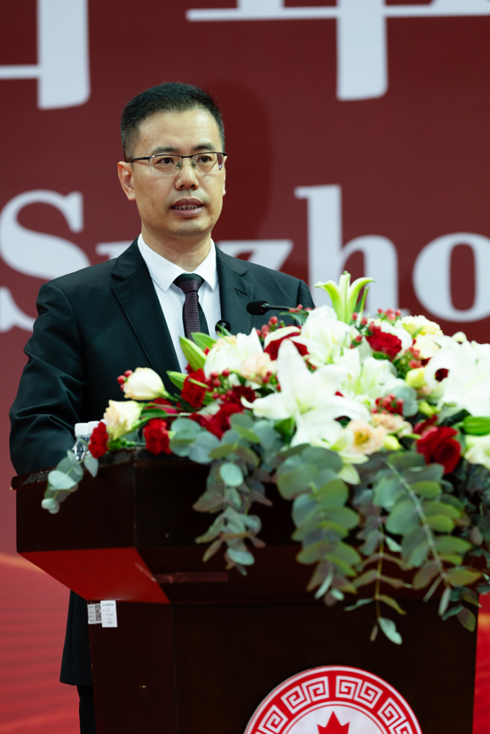 工学院院长、工业互联网教育研究所所长魏磊代表全体教师发言,他指出,大学是人生成长过程中最重要的阶段,大家选择在苏州百年度过这一阶段,作为老师深感肩上的责任重大。他给同学们提三点希望:希望同学们心怀天下、志存高远、自强不息、行稳致远;希望同学们尽快适应大学环境,实现角色的转换,脚踏实地、坚持不懈、学有所成、业有所精;希望同学们做一个心中有爱、懂得感恩的人。他最后说道:BB贝博艾弗森官方网站是属于你们的舞台,请在这个舞台上尽情挥洒汗水,献出你们最精彩的演出,不负青春、不负这美好的大学时光!
