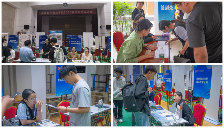 在秋日的暖阳下,双选会现场人头攒动,气氛热烈,吸引了来自全国各地的知名企业参与,包括江苏独角兽企业有限公司、苏州格雷特智能设备股份有限公司、苏州奥拉动漫科技有限公司、招商证券股份有限公司、苏州滔为智能科技有限公司、苏州神州税道企业管理服务有限公司以及众多优秀企共计40余家,为2025届毕业生提供了大量的实习及就业岗位,覆盖信息技术、智能制造、金融服务、生物医药、教育文化等多个热门行业。