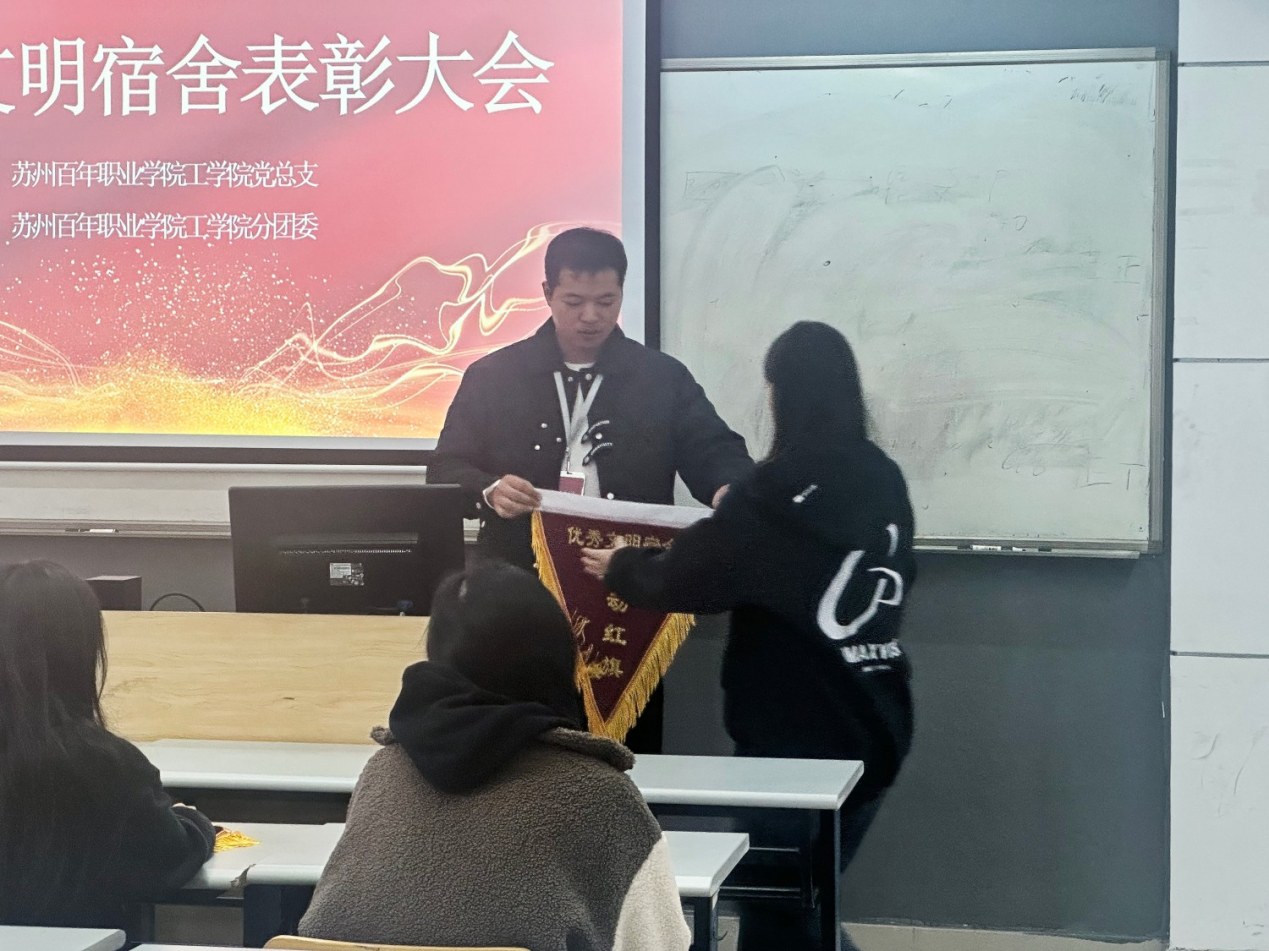 为了加强校园文明宿舍文化建设,营造良好的学习生活环境,提高学生的文明素养,工学院于2024年11月18日下午隆重举行了2024-2025第一学期“优秀文明宿舍”表彰大会,旨在表彰在本学期中积极践行文明行为、营造和谐宿舍氛围的优秀宿舍及个人。