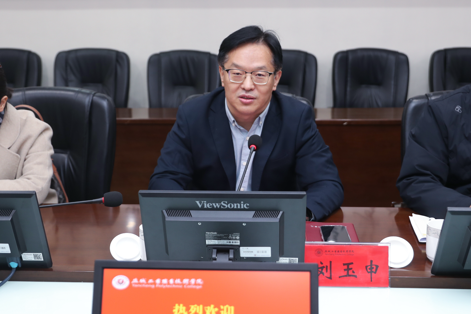 座谈中,盐城工业职业技术学院校长刘玉申介绍学校发展情况。沈宗根听取介绍后表示,盐城工业职业技术学院作为万人办学规模高校,在国家级技能大赛、项目实践教学以及国际人才培养等方面的做法与经验,特别在“一带一路”人才培养上的实绩成就,对学校高质量发展中的内涵建设做了鲜明注脚,期待两校加强交流,发挥好技能大赛、项目实训以及“一带一路”交流对两校协作共进的积极作用。