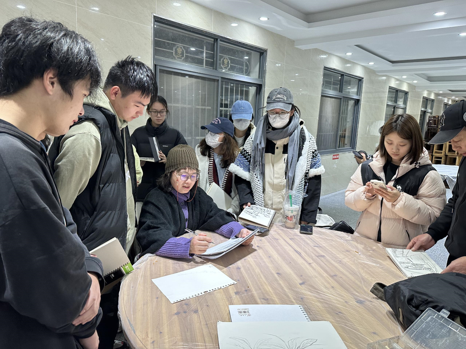 在此次写生活动中,专业教师蔡亚波老师精心设计了每日的绘画主题,帮助学生逐步提高绘画水平。从初学者到逐步深入,每天发布的主题都紧密结合学生的实际能力与创作需求,鼓励学生勇敢探索新的表现方式。蔡老师和张新荣老师在绘画过程中悉心指导,耐心传授技法,每晚集中评图,针对每位学生的作品提出具体意见,帮助他们不断完善,提升艺术表现力。