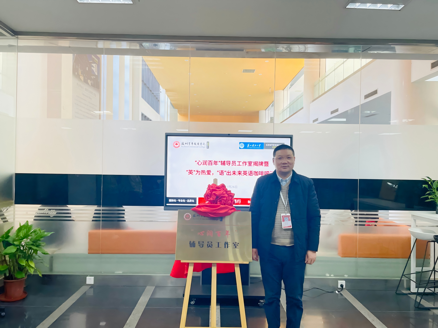 接着,在大家的共同见证下,李世明为“心润百年”辅导员工作室揭牌,并表示辅导员是学生成长道路上的重要引路人,希望“心润百年”辅导员工作室能够充分发挥自身优势,不断创新工作方法,为学生的全面发展贡献智慧和力量。