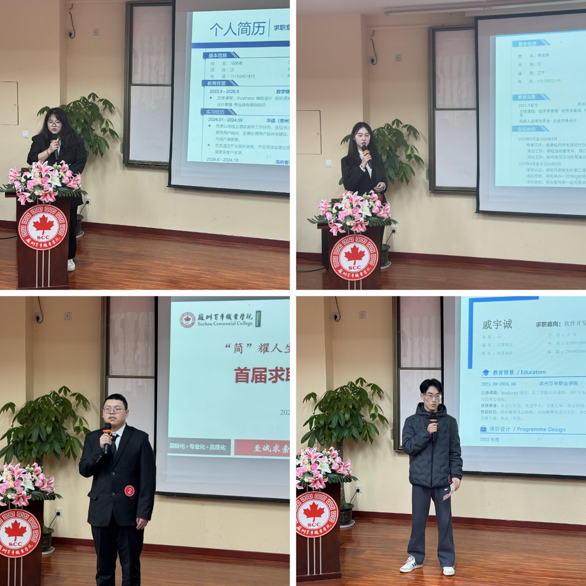 本次大赛经过各二级学院的选拔,共有10名选手晋级校赛。校赛共分为个人展示和评委提问两个环节,参赛选手结合自身经历,从教育背景、实习实践、专业技能、荣誉奖励等方面进行展示;评委们根据选手的展示和简历情况进行提问并根据现场表现,从简历外观设计、简历内容及简历整体效果三个方面进行打分,在肯定每位选手实力之余,也指出了各位选手亟待改进之处,令参赛选手们受益匪浅。