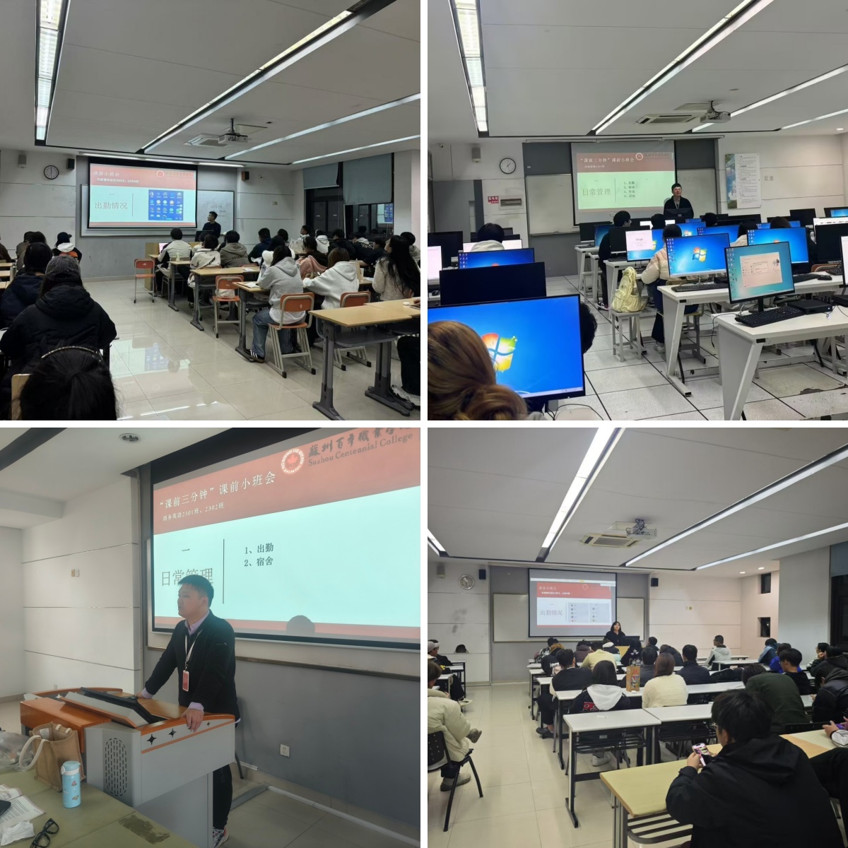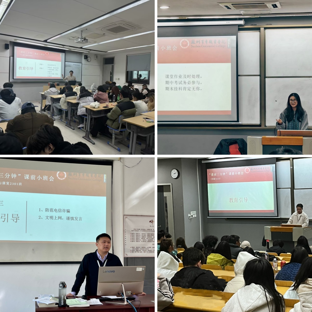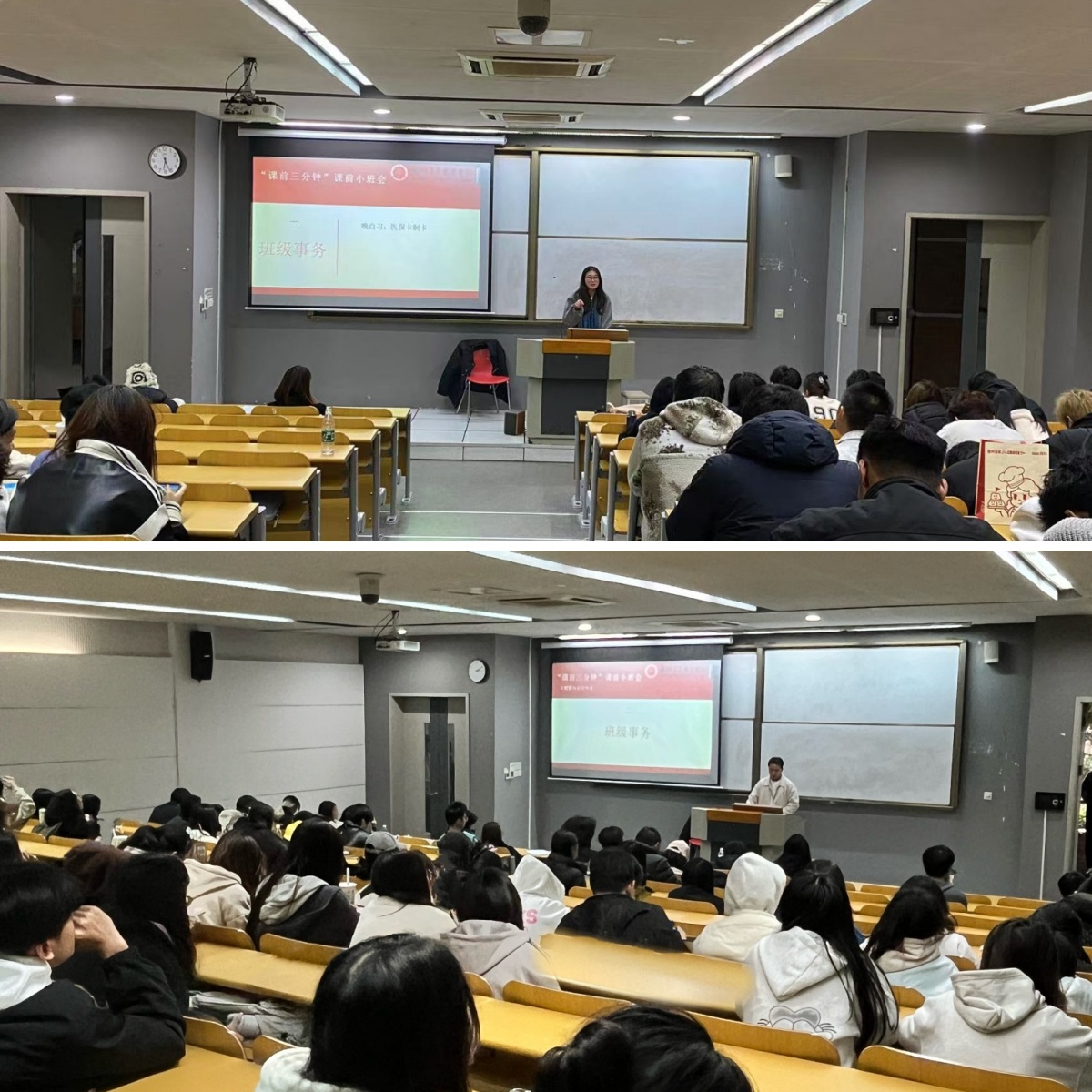 “课前三分钟”小班会新模式是商学院在思想政治教育方面的一次有益尝试和创新,将“班会”挪到“课前三分钟”来进行,主要内容包括一分钟的班级日常管理、一分钟的具体事务说明、一分钟的思想政治教育,探索出了一条具有商学院特色的思想引领、教育管理和班会开展的新路径、新模式。这一模式的成功实施,为商学院的教育创新提供了有力支撑,为进一步管理好班级、服务好学子奠定扎实基础。