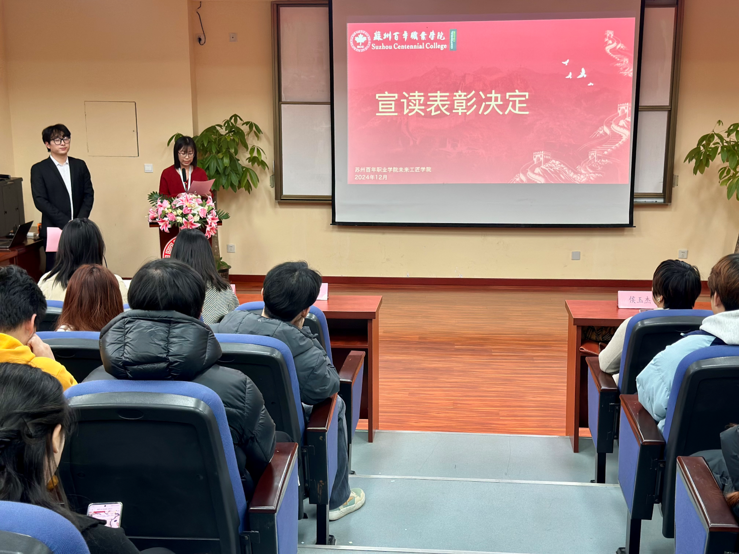 贝博官网校长助理、未来工匠学院院长侯玉杰,学工处处长胡赛出席表彰大会;学院党总支书记曹晓娜,学工办主任杨帆,辅导员老师及受表彰同学和部分学生代表参加,学院分团委书记张成杰主持会议。
