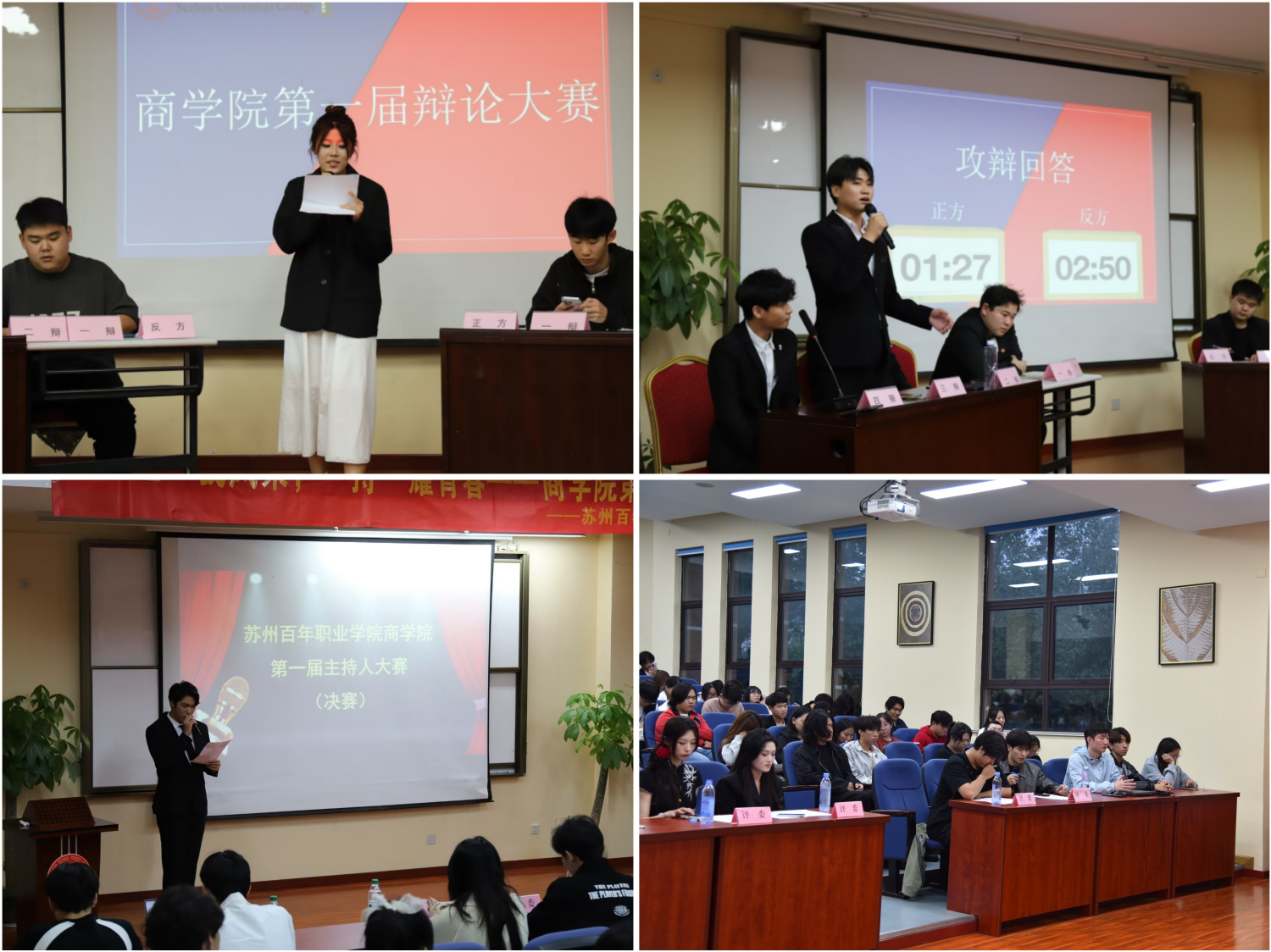 主持风采,思辨飞扬。辩论与演讲活动各具魅力,商学院第一届辩论赛的开展锤炼了学生的逻辑思维,提升表达能力。主持人大赛展现了富有活力的青春风采,拓展学生的综合素养,为校园文化的发展注入新的活力。