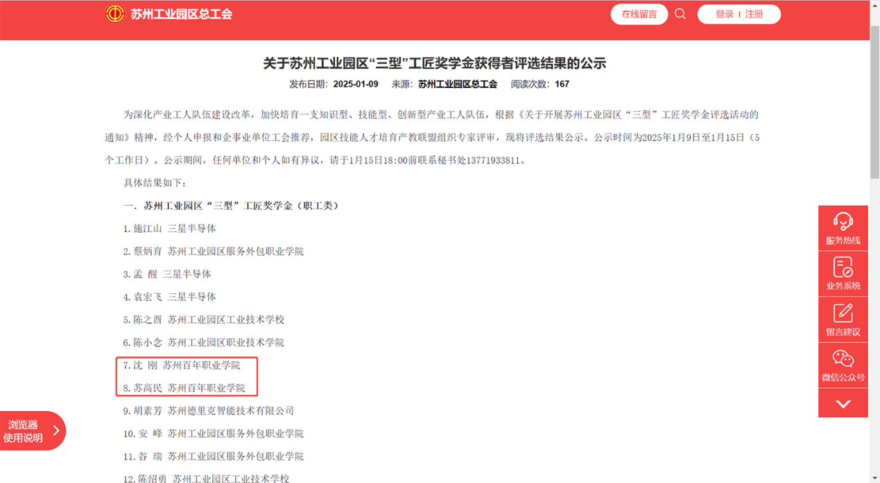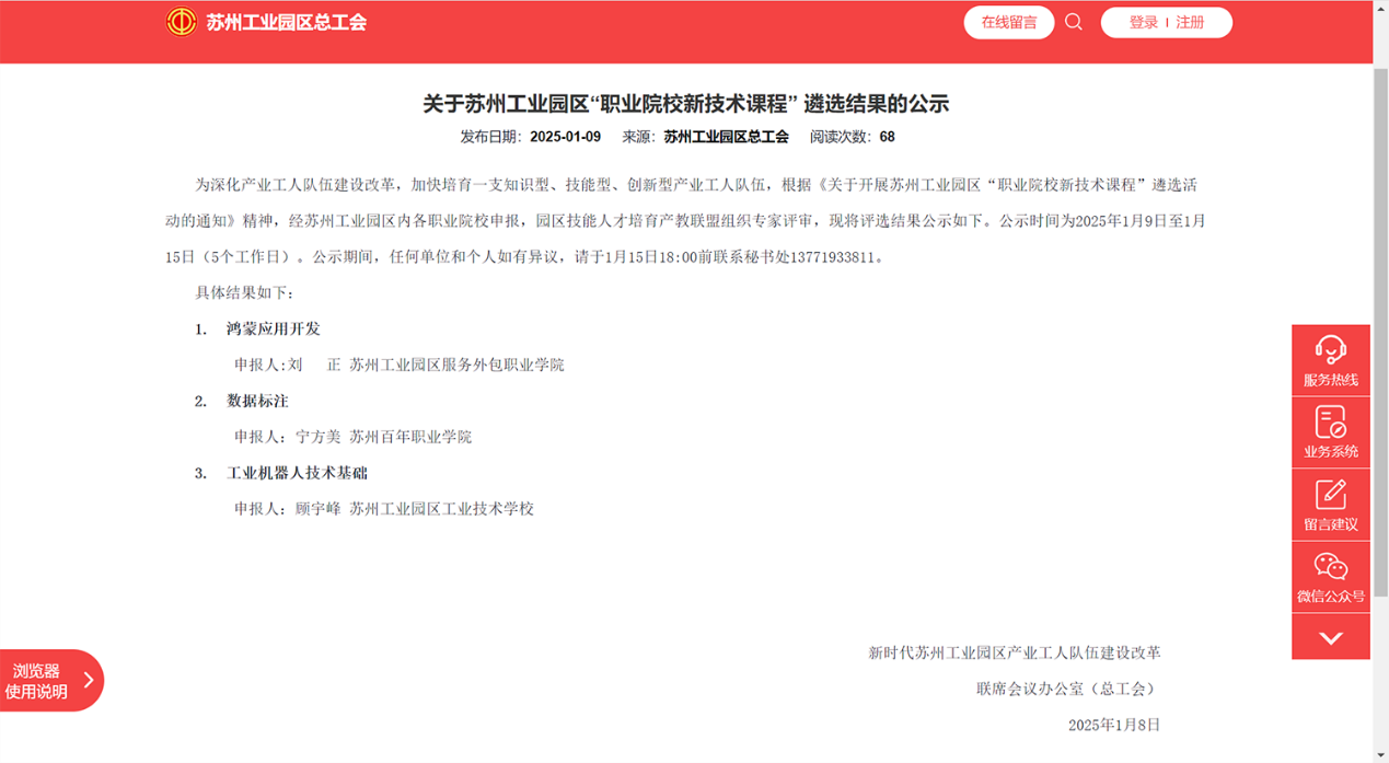 近日,苏州工业园区总工会揭晓“职业院校新技术课程” 遴选及 “三型” 工匠奖学金评选结果,BB贝博艾弗森官方网站工学院成绩斐然。