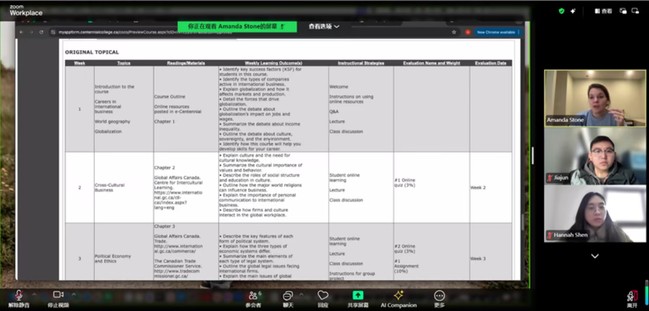 2025年1月16日上午9点,BB贝博艾弗森官方网站商学院成功举办了一场聚焦于 International Business 专业的培训活动。此次培训特邀加拿大百年理工(CC)商学院副院长 Amanda Stone 女士,与BB贝博艾弗森官方网站商学院的新任CC教师齐聚一堂,共同围绕课程大纲、教学管理及过程展开深入讲解与热烈讨论。