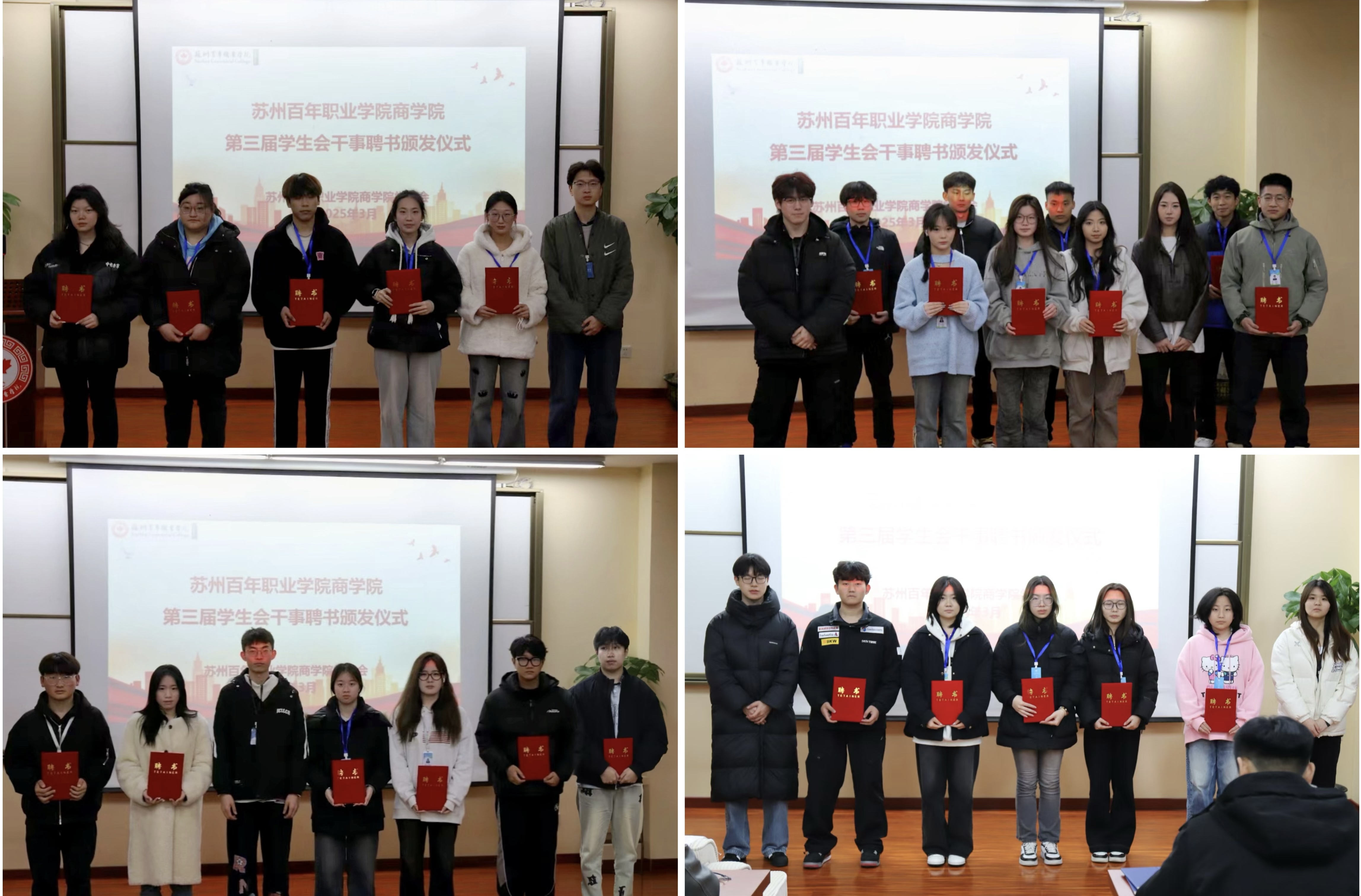 在学生干部培训环节,宣传部副部长王渤文从新闻稿撰写、活动策划、公众号排版、基础办公软件应用等方面对全体成员进行了深入浅出的讲解,为学生活动开展赋能增效。随后举行商学院第三届学生会干部及干事聘书颁发仪式,这不仅是对学生干部们过往工作的认可,更是赋予他们新的责任与使命,激励大家以青年之我,奋斗之我,绘就新时代青年的青春担当。