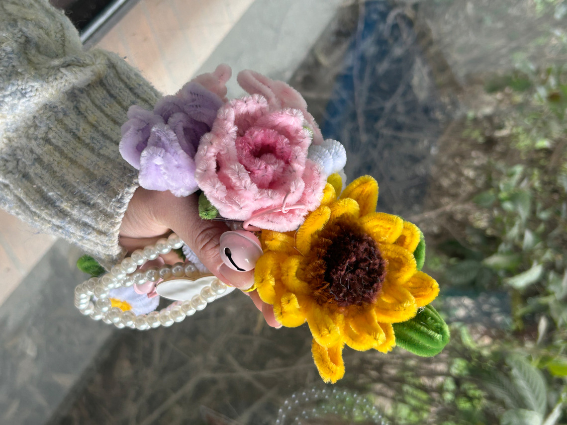 活动渐近尾声,大家纷纷将自己精心制作的扭扭棒手工花束相互馈赠,传递节日最美好的祝福。一朵朵饱含深情的手工花,承载着师生之间的真挚情谊,在校园中传递着无尽的温暖与关爱。
