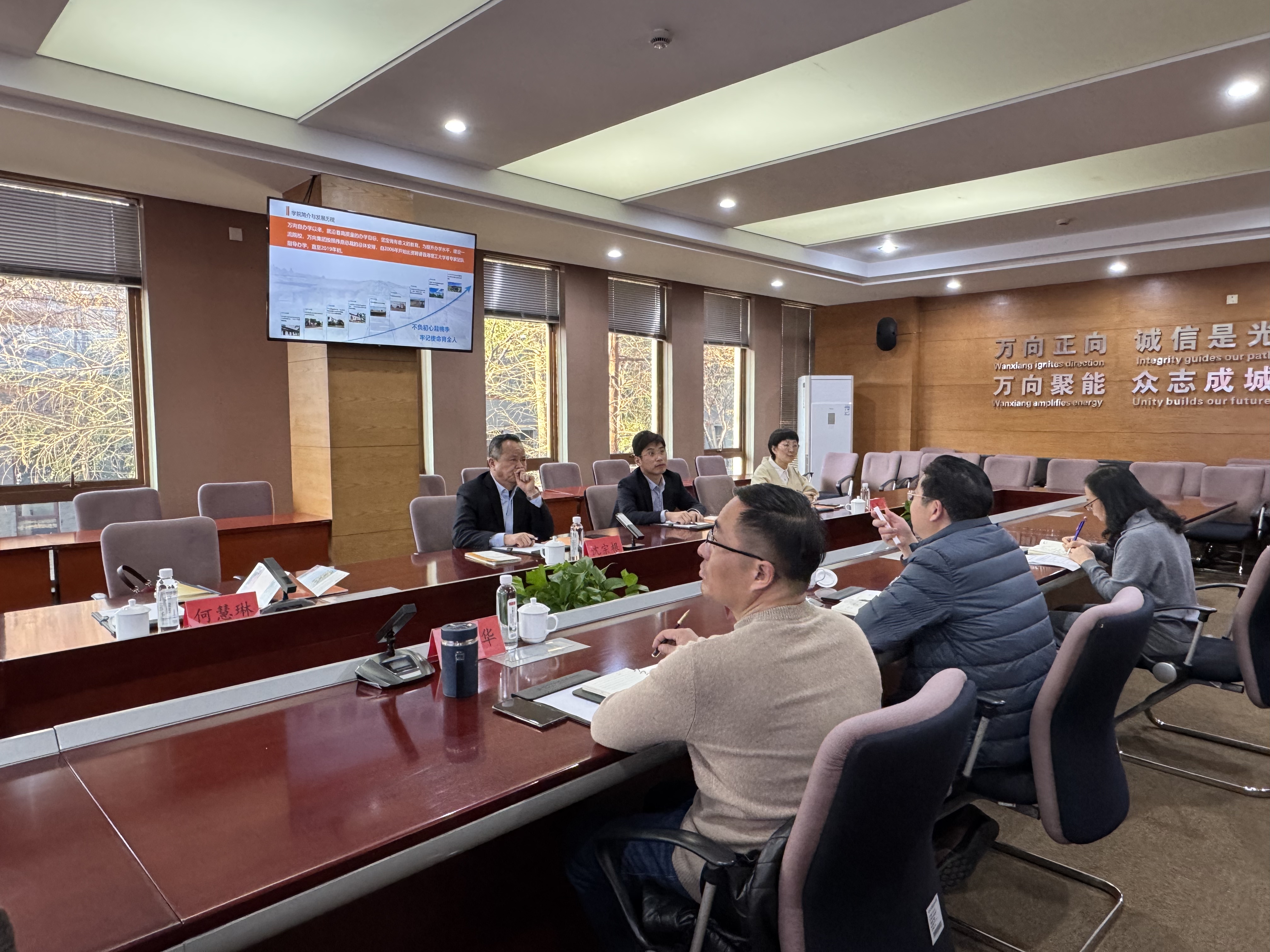 为学习借鉴先进办学经验,进一步做好学校人才培养、专业建设、产教融合等方面工作,推动学校高质量发展,3月21日副校长沈宗根带领校长助理袁祥和商学院、未来工匠学院相关负责人赴杭州万向职业技术学院交流学习。杭州万向职业技术学院院长牟惠康、副院长朱仁学及相关负责人参加交流活动。