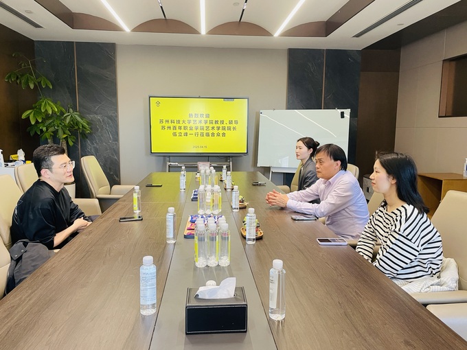 为深化校企合作,推动人才培养与行业需求深度融合,2025年4月15日,艺术设计学院院长伍立峰带领广告艺术设计教研室主任高慧琳、专业主任张怀之及教师代表,前往苏州合众合文化传媒有限公司开展“访企拓岗促合作”专项活动。
