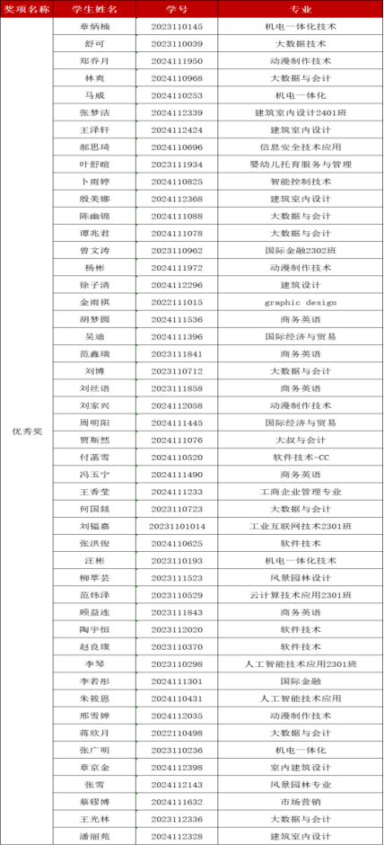 为鼓励同学们提升对英语学习的浓厚兴趣,以赛促学,本次校赛对排名10%-30%(含)的学生另设校赛优秀奖奖励。具体名单如下: