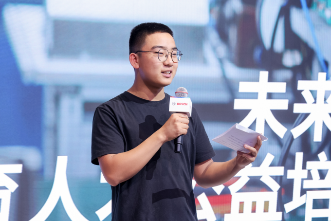 活动现场,未来工匠学院23级智能控制技术专业朱志煜作为学生代表发言。他分享了参与博世中国第一期“未来新工匠”校企合作项目的成长经历,感谢项目提供的实践与理论结合的学习平台,让他体会到现代智能制造业核心技能及行业人才需求,发言赢得热烈掌声。