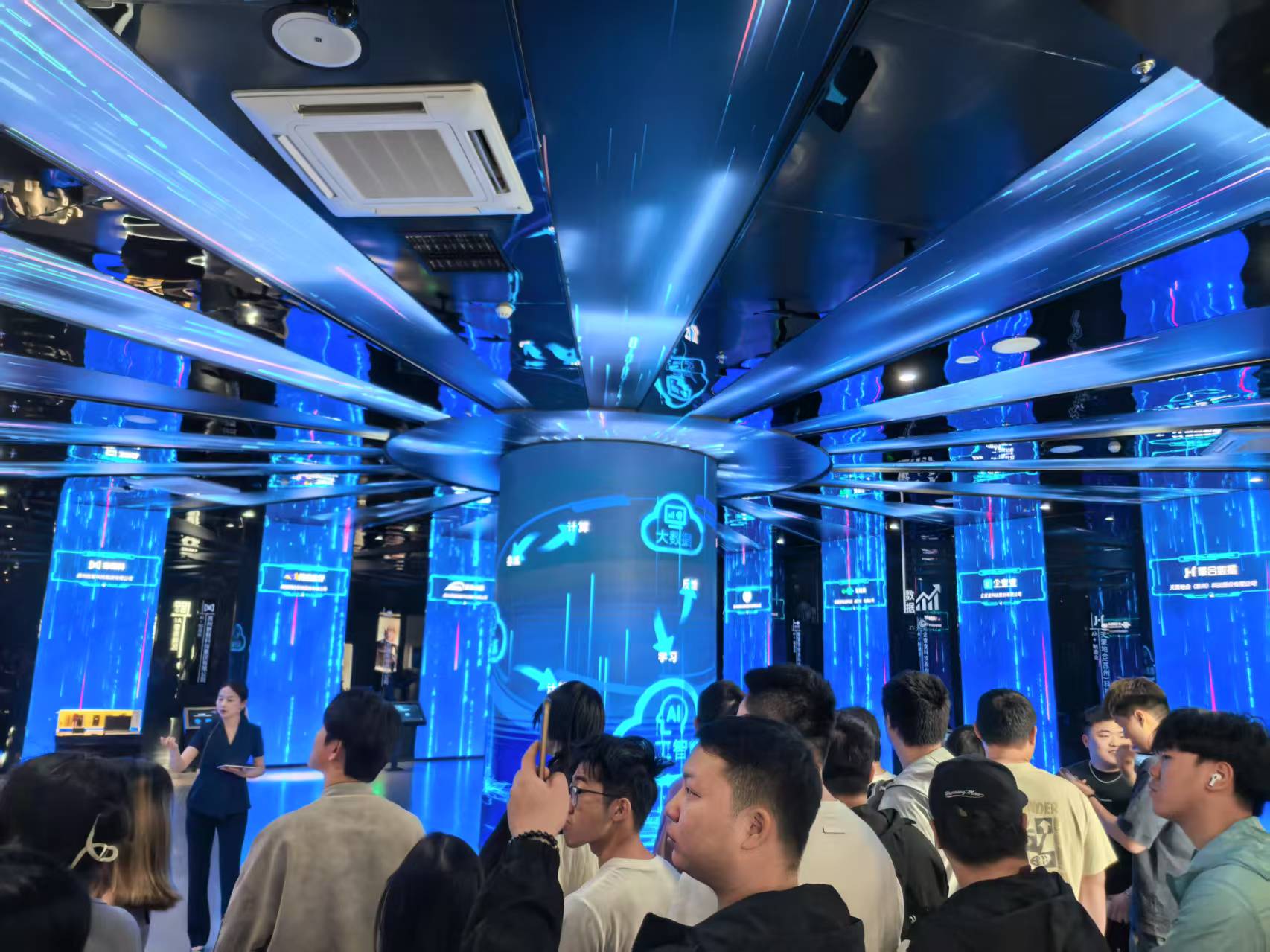 苏州智能制造融合创新中心作为全国首批7家工业互联网平台体验中心之一,汇聚了智能机器人、数字化工厂、工业互联网平台等先进技术应用场景。在中心讲解员的带领下,学生们依次参观了智能装备展示区、工业互联网平台操作中心及智能制造生产线模拟区。通过观看智能机器人协同作业、数字化孪生系统实时演示等,同学们直观感受到“智改数转”对制造业的革新力量。一名机电一体化技术专业的学生表示:“课本中的抽象概念在这里变得触手可及,尤其是人机协同的精密流程让我对行业未来充满期待。”