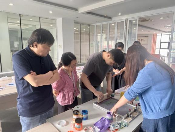 在教师的指导下,学生们通过反复的尝试与调整,逐渐掌握了丝网印刷的技巧。在动手印刷的过程中,学生们不仅体验到了创作的乐趣,而且更加深刻地理解了色彩搭配和图案设计的要点。