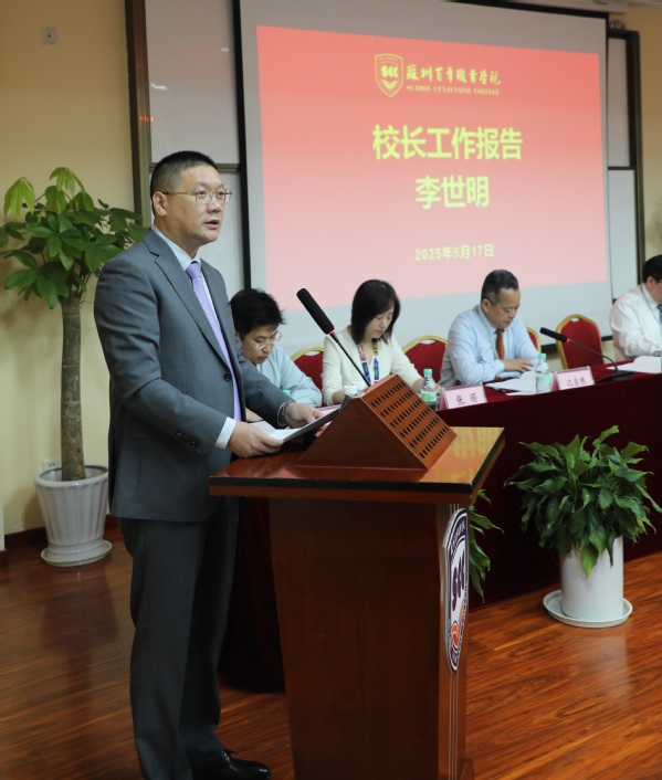 在第一次全体会议上,校长李世明作了题为《挺膺担当,奋勇争先开启中外合作办学高职院校创新版建设》的工作报告。报告从招生就业、立德树人、人才培养、产教融合、国际合作、学生管理、队伍建设、条件保障、平安校园、党建引领等十个方面,全面总结回顾了2024年学校事业高质量发展所取得的可喜成绩,深入分析了学校当前发展所存在的困难与问题,并从十二个方面科学谋划了学校2025年重点工作,鼓舞人心、催人奋进。