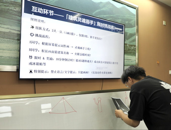 分享会后半程,建筑速写你画我猜游戏将气氛推向高潮。参与的挑战者以简笔勾勒哥特尖顶、包豪斯几何体等经典元素,通过线条与空间的即兴创作传递建筑语言。这些以分享会建筑为原型设计的文创奖品,将凝固的艺术转化为日常美学,成为活动记忆的实体延伸。