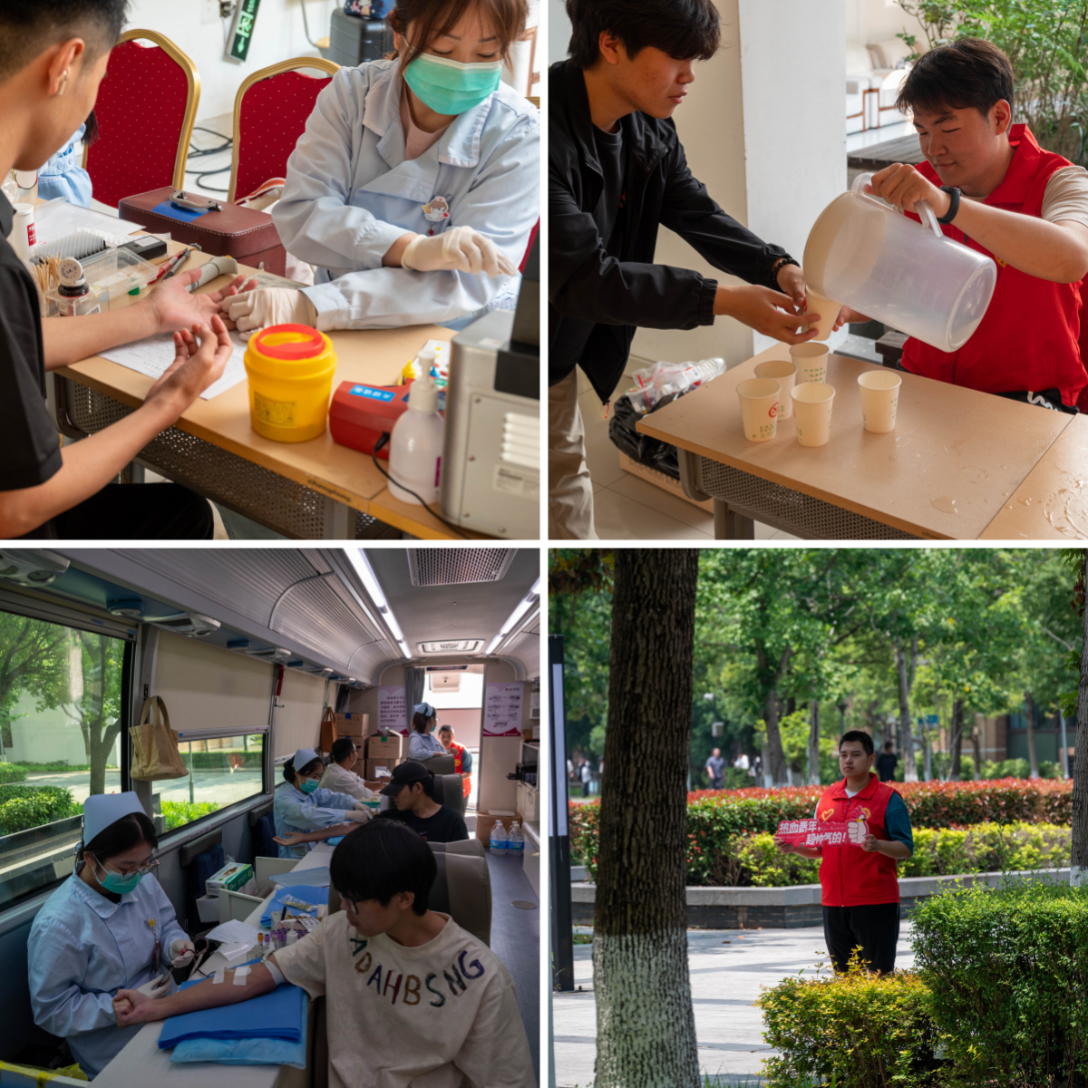 与此同时,由青年志愿者组成的服务队全程提供引导讲解、秩序维护、饮水食品等贴心服务,并设立宣传咨询点,普及无偿献血知识,增强了大家对献血公益的认知和理解。许多首次献血的同学纷纷表示:“虽然有点紧张,但想到能为他人带去希望,就觉得特别有意义。”
