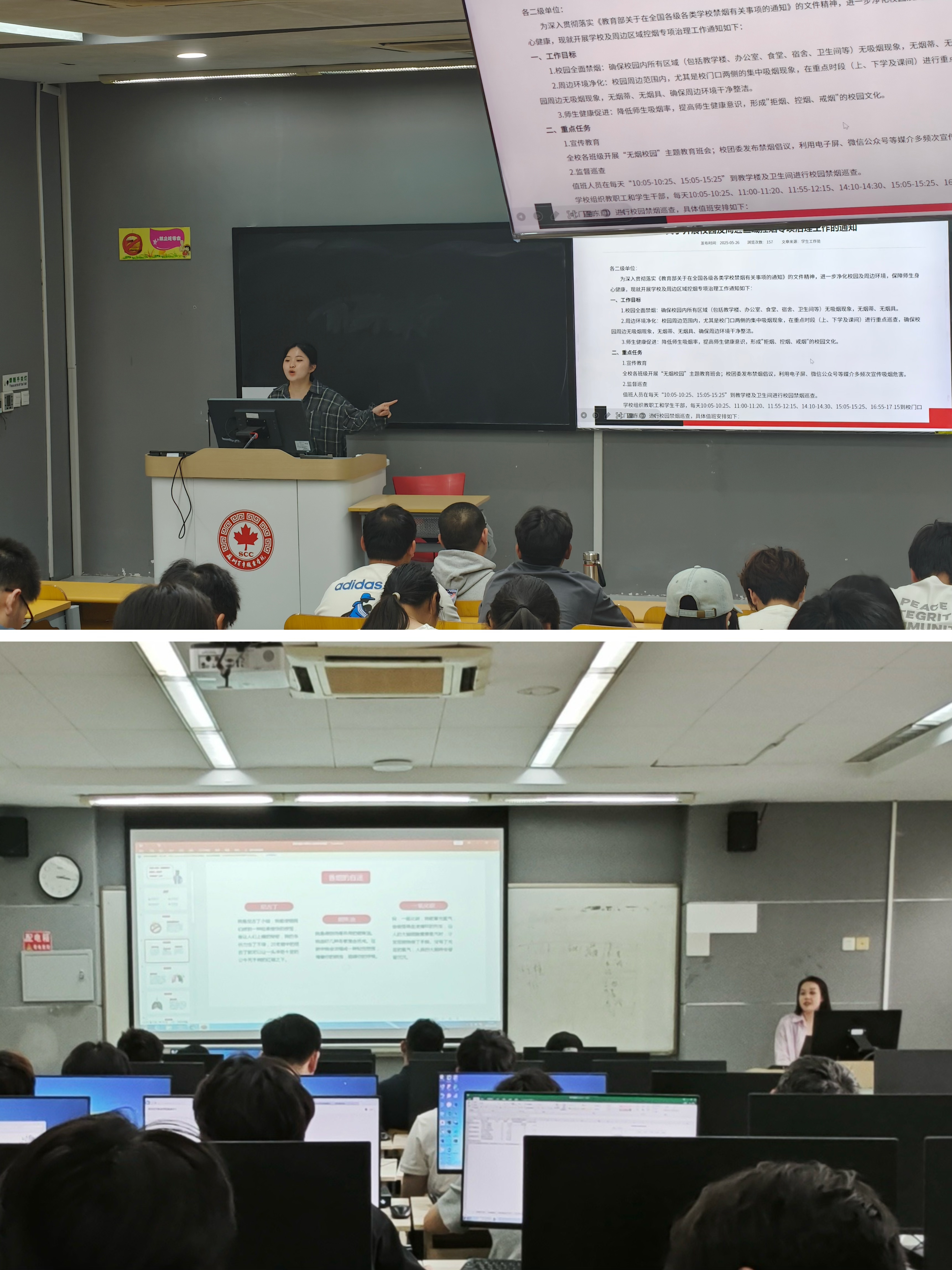 聚焦立德树人任务,共筑无烟校园环境。为深入推进学风建设,营造健康向上的校园环境,商学院分别围绕“出勤纪律”“校园禁烟”两大主题于上周和本周组织开展主题班会。班会旨在强化学生纪律意识,提升课堂出勤率,同时倡导无烟校园理念,引导学生养成健康生活习惯,为创建文明、和谐、积极向上的学习氛围和校园环境奠定基础。