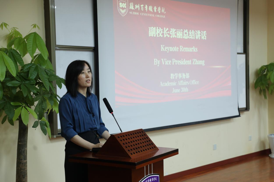 张丽首先为本届青年教师发展论坛作总结报告,她指出,本届论坛以“强师铸魂、能力提升”为主题,紧扣学校“442”发展战略,构建“师德为魂、能力为基、创新为要”的“三维一体”教师发展体系。四个月来,通过名师引领、实践赋能、竞赛锤炼三大路径为学校教师队伍建设筑基赋能,学校师德师风建设成效显著提升、教育教学能力实现创新转变、协同育人生态稳步构建,充分彰显了“教师是教育发展第一资源”的理念,为落实立德树人根本任务提供了坚实保障。她强调,论坛是学校“金师”培育工程的关键一环,未来将深化“三教改革”、推进AI技术全场景应用,并强化国际视野与产业对接,为苏州“1030”产业体系输送高素质技术技能人才。