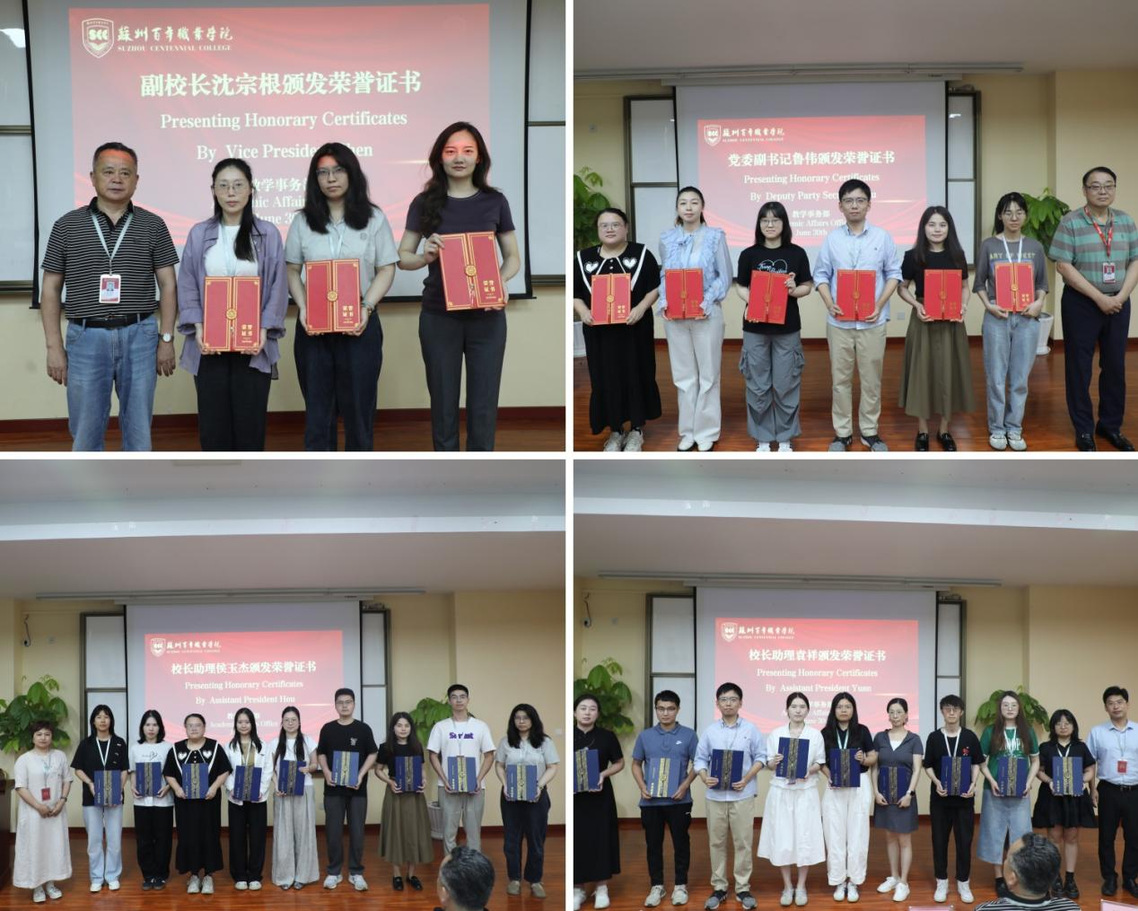 大会对在青年教师教学能力大赛、微课比赛、说课比赛、教案比赛中表现优异的教师进行了表彰。沈宗根、鲁伟、侯玉杰、袁祥分别为获奖教师颁发荣誉证书。这些奖项既是对获奖教师个人努力的肯定,也是对全体青年教师积极参与教学创新实践的激励。