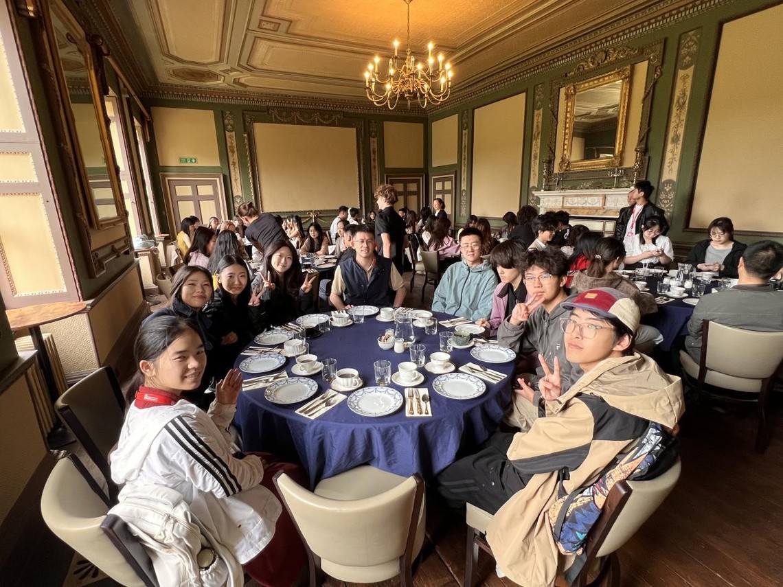 北安普顿郊外的德拉比庄园(Delapré Abbey)内,学生体验英式下午茶。银器托盘上的司康饼搭配凝脂奶油,北安Rachel老师对茶具历史的讲解:“茶杯手柄朝向体现社交距离”——苏州百年的学生在日记中写道:“这不仅是礼仪,更是英国阶级文化的符号学”。