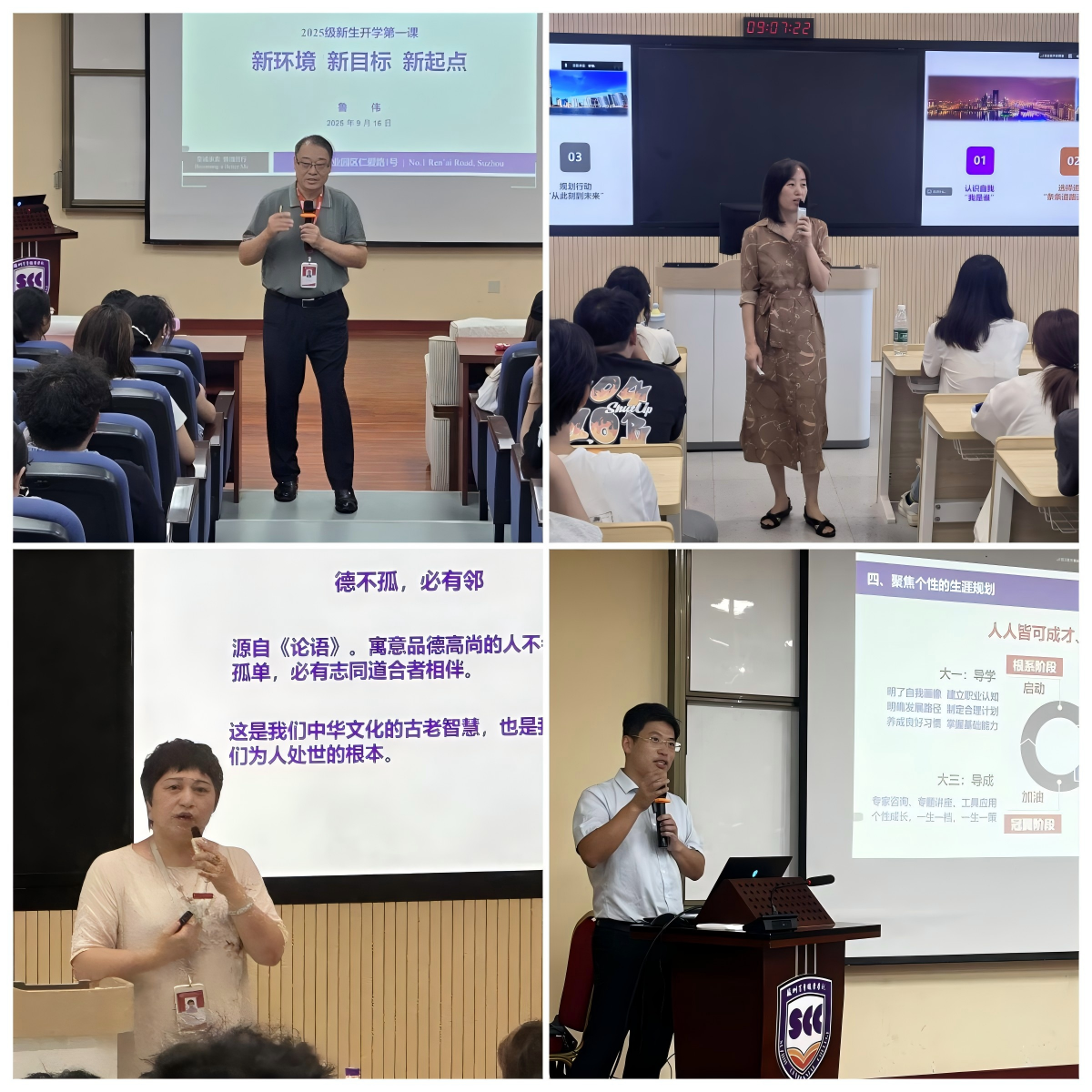 鲁伟鼓励艺术与创意设计学院新生要积极参与项目实践,在实战中提升职业适应力;张丽结合苏州人工智能产业发展趋势与产业人才需求,为人工智能与大数据学院新生解读专业核心与职业路径;侯玉杰向智能制造学院新生阐述“工匠精神”的内涵,激励新生通过技能竞赛和实践锻炼积累经验,为进入智能制造领域打好基础;袁祥为数字经济与管理学院新生鼓劲,希望新生在学好基础课程的同时,重点提升专业实用技能,培养市场洞察与沟通协作能力,适配数字经济领域的岗位要求。