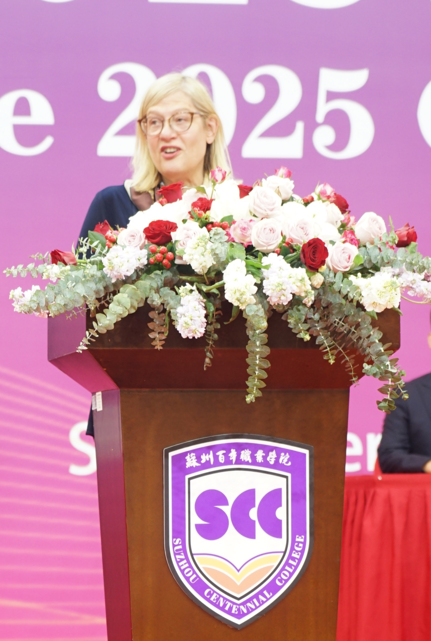 贝博官网董事长、加拿大百年理工学院副校长夏尔曼·海克致辞,她首先代表该校全体师生及校长史蒂文森博士向即将开启全新学习成长之旅的2025级新生表示祝贺。她希望更多贝博官网学生能前往加拿大百年理工学院继续深造,并介绍该校始终秉持对多元文化的包容与尊重,高度重视学生的自信融入与跨文化适应能力。她充分肯定了贝博官网教职工对跨国教育模式的贡献,并引用“千里之行始于足下”的中国古训,鼓励新生在学校搭建的国际化平台上勇敢启程,成为具备全球视野的终身学习者。