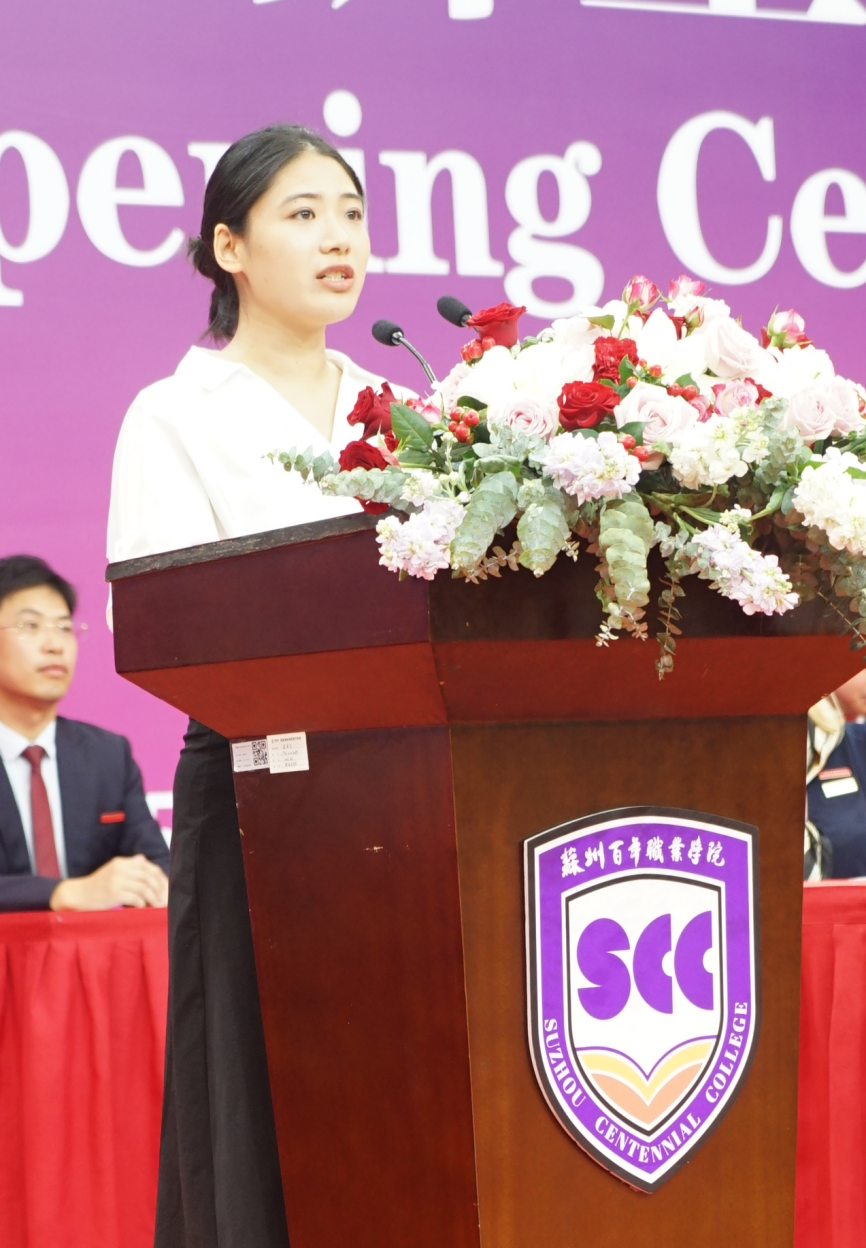 教师代表王璠以“三束光”为喻,寄语新生装载“理想之光、勤勉之光、勇气之光”,承诺全体教师将作为引导者与同行者,支持学生依托学校“转本-留学-就业”全链条平台稳步成长。