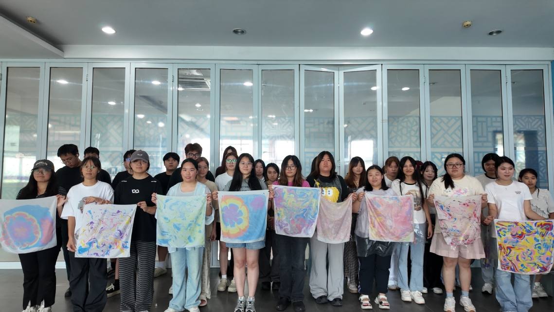 活动伊始,指导老师胡峪谷以“水拓画的文化之旅”为主题,通过讲解水拓画的中国起源、丝路传播历程及“以水为纸、以色为墨”的艺术价值,让学生了解其作为中外文化交流载体的意义。