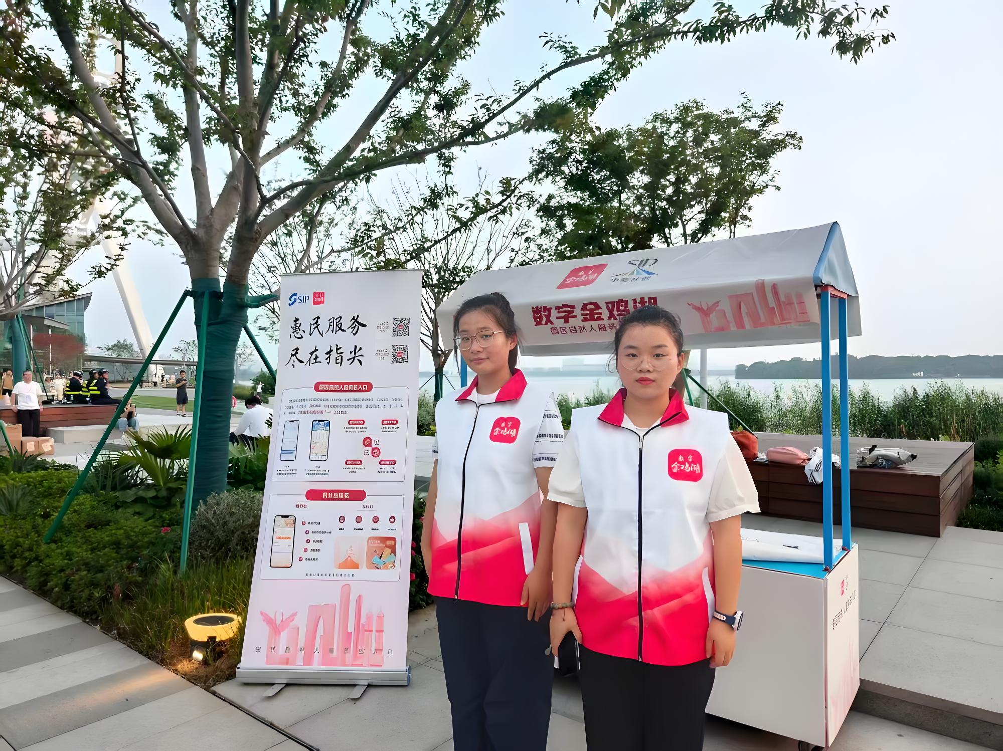 为助力园区市民更好地融入数字化生活,9月27日,贝博官网数字经济与管理学院分团委组织“青年先锋队”志愿者开展便民推广志愿服务。陈家豪老师带领志愿者在右岸音乐广场开展“数字金鸡湖”App推广活动,将智慧便民服务送到市民身边。
