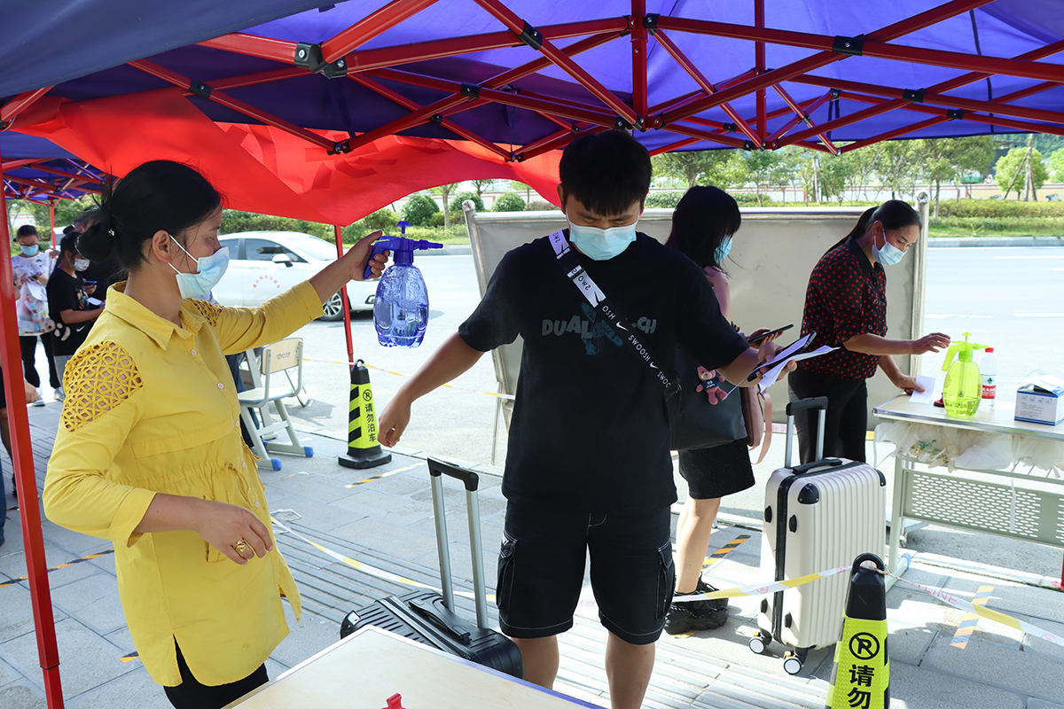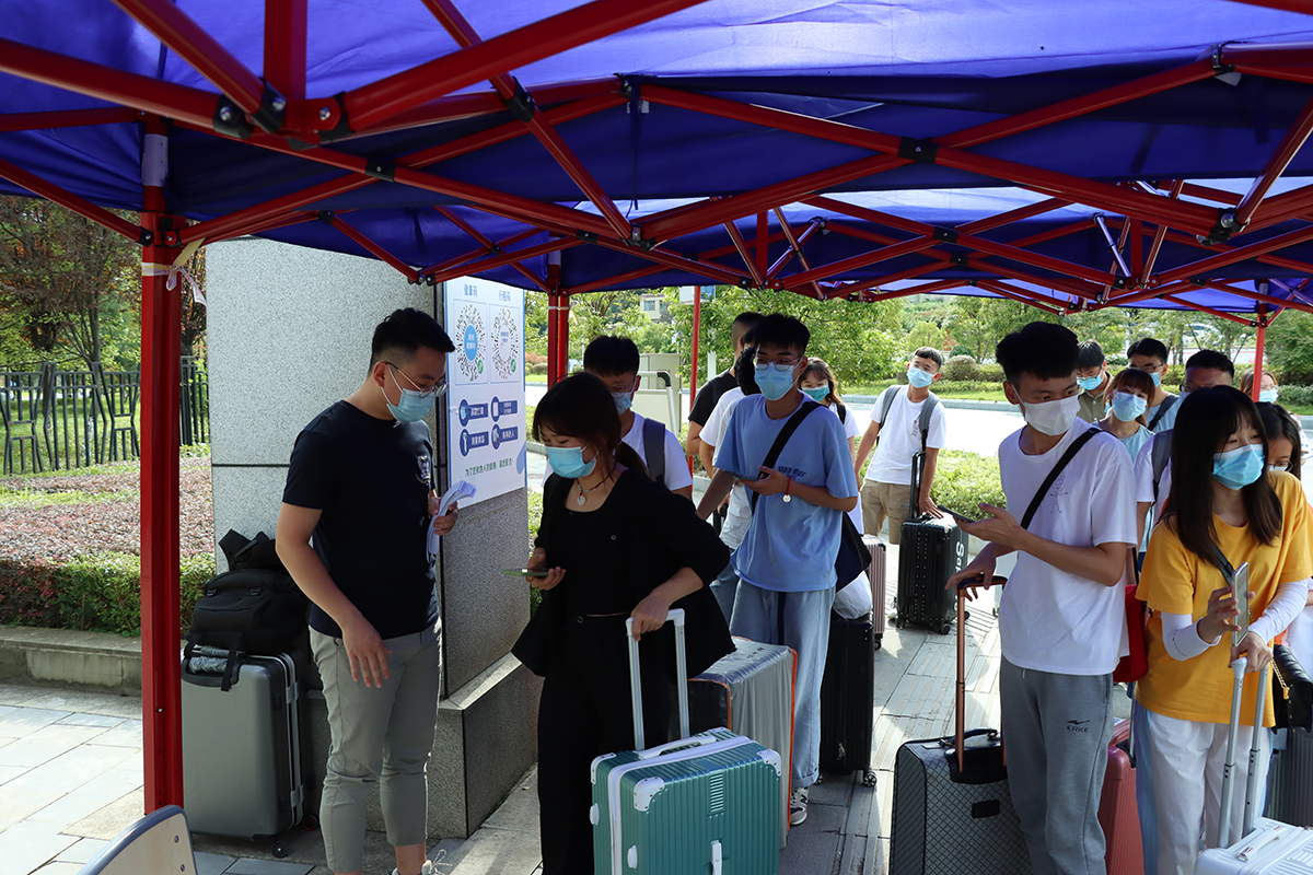 The staff carefully checked each student’s health code, itinerary code, and nucleic acid test report. After the students went through the steps of temperature measurement, identity verification, hand cleaning, luggage disinfection, etc., they arrived at the check-in point to sign a health commitment. A series of strict epidemic prevention inspections provided a strong guarantee for the students' safe return as well as physical & mental health.