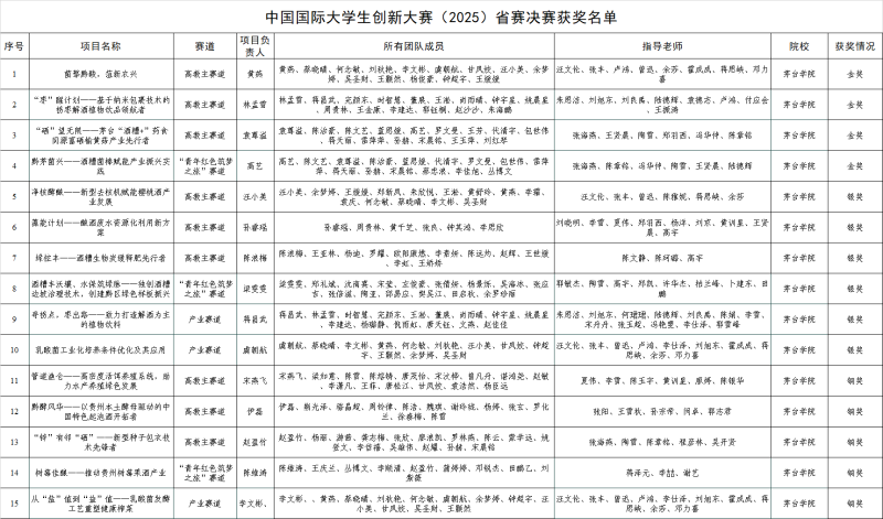 The achievements in this provincial competition vividly demonstrate the continuous efforts of Moutai Institute in building a five-dimensional integrated innovation and entrepreneurship education system, which encompasses "Classroom teaching, Entrepreneurship training, Disciplinary competitions, Innovation and Entrepreneurship training, and Achievement incubation". Moving forward, Moutai Institute will continue its efforts to further deepen industry-education integration, strengthen interdisciplinary collaborative innovation, and accelerate the transformation of high-quality projects into practical productive forces, striving to cultivate more high-quality applied talents with innovative spirit, practical ability, and social responsibility.