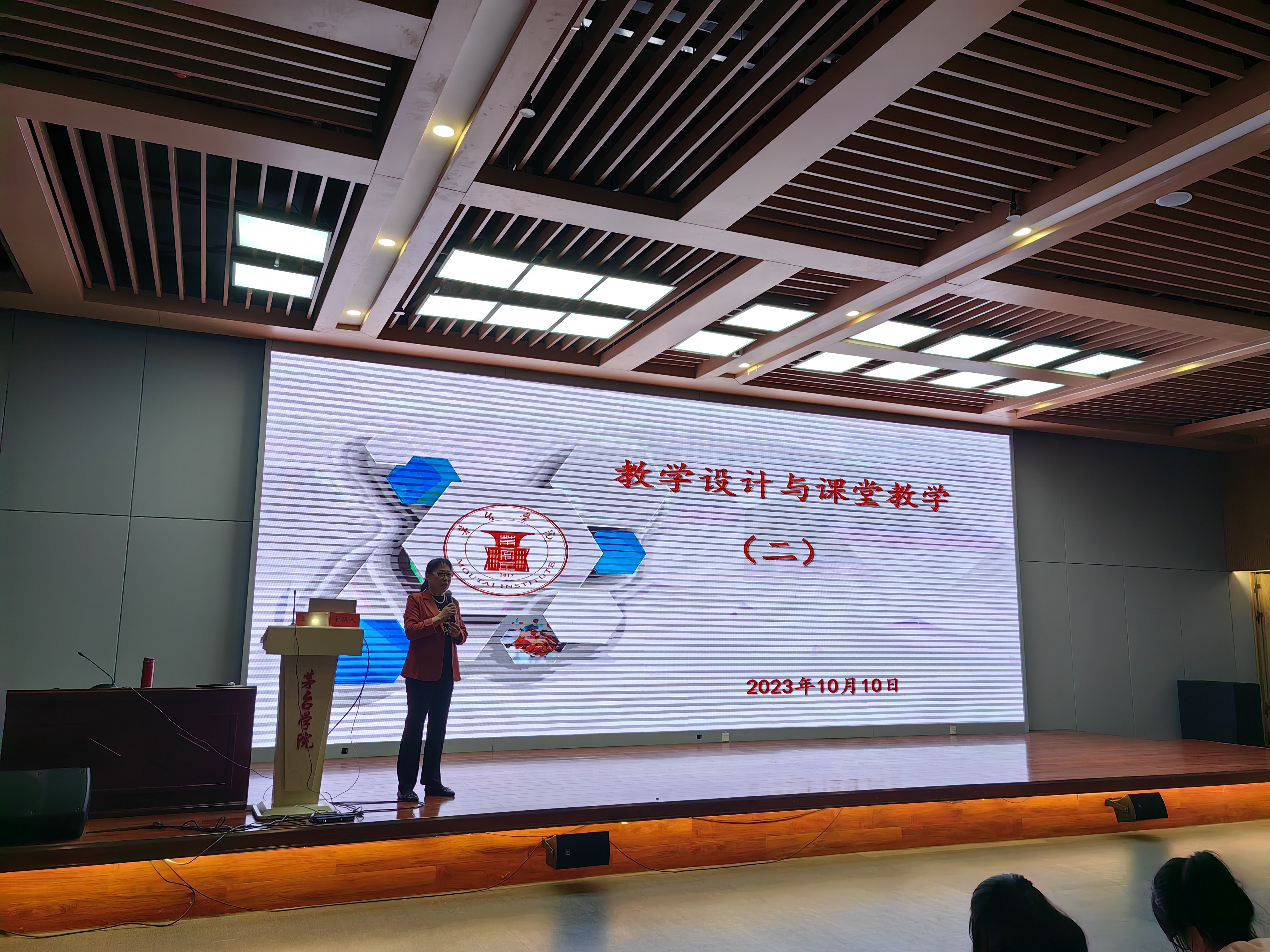 王健芳教授主要围绕教学设计、教学设计与课堂教学、课堂教学、教学过程把控个方面展开讲授,引导教师们要养成认真负责的教学态度,不断学习和研究教学理论和方法,不断丰富教学技能和知识储备,灵活运用各种教学方法和手段
