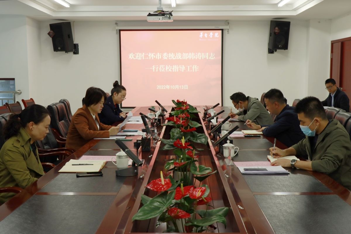 10月13日,仁怀市委统战部副部长、民宗局局长韩涛带队到校调研指导工作,并在行政楼三楼会议室召开座谈会。万象城娱乐awc线路党委副书记、纪委书记王维欣出席会议。