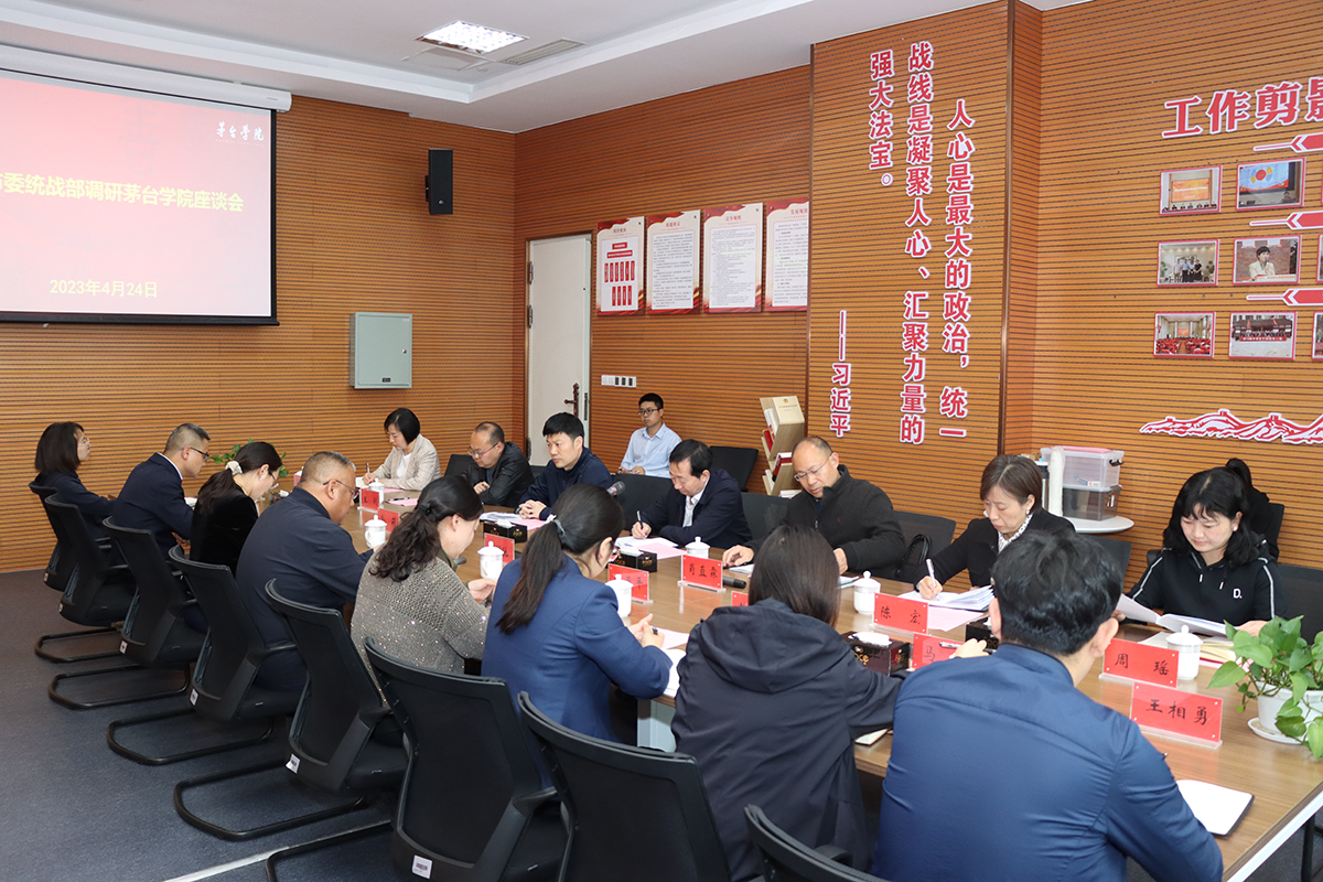 为深入贯彻落实中央统战工作会议精神和《中国共产党统一战线工作条例》文件精神,进一步加强和推动学校统一战线工作,3月24日,遵义市政协副主席、致公党遵义市工委主委、遵义市欧美同学会(留学人员联谊会)会长范奇元,遵义市委统战部副部长肖直霖一行在仁怀市委统战部的陪同下,到万象城娱乐awc线路调研指导统战工作,座谈会在图书馆二楼会议室召开。学校党委副书记、常务副校长李增驰,党委委员、副校长余莉出席座谈。
