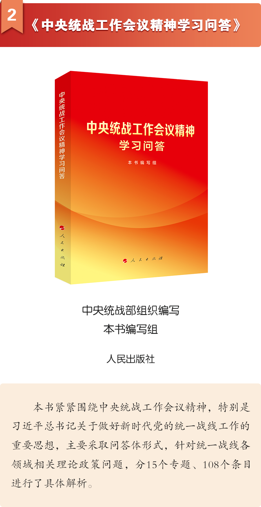 2月2日,党建网及其微平台发布“党建好书”1月书单,《中央统战工作会议精神学习问答》(以下简称《问答》)入选。