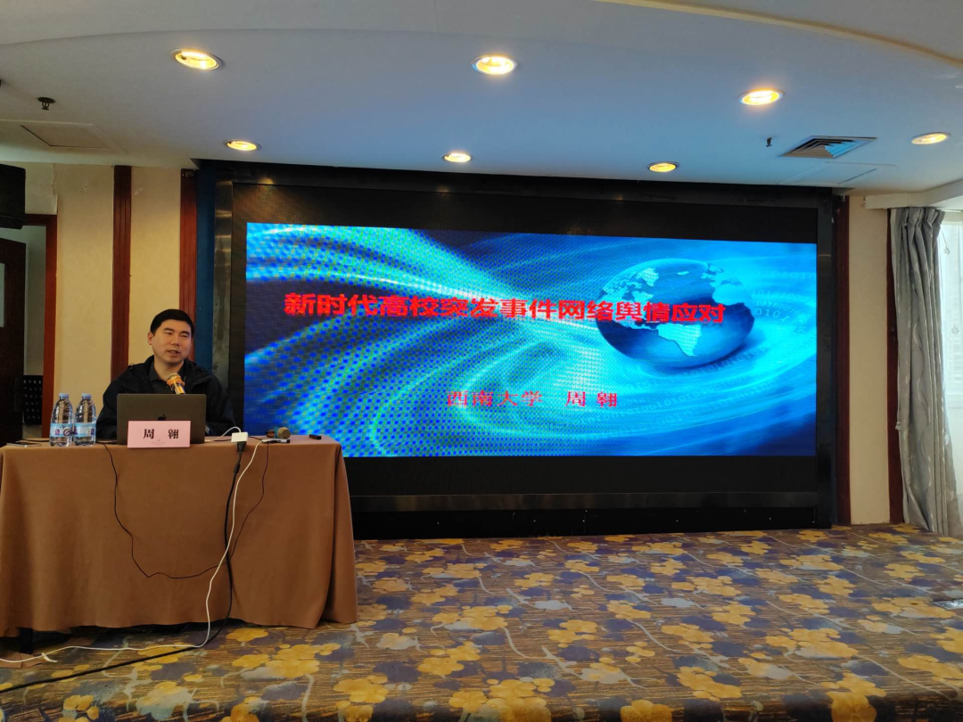 来自西南大学的周翱老师从高校突发事件预防与处置、高校疫情防控工作风险防控、高校突发网络舆情事件应对策略三方面作了分享。辽宁生态工程职业学院的刘明耀老师聚焦辅导员的职责,结合学生心理危机干预、新生资格审查、学生退学、请假、学生处分、谈话教育等多方面多角度识别与处理辅导员日常工作中不容忽视的危机与风险,同时也通过理论讲解、案例解析为辅导员“化危为机”提供了基本遵循和路径参考。