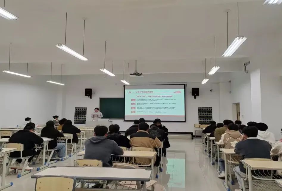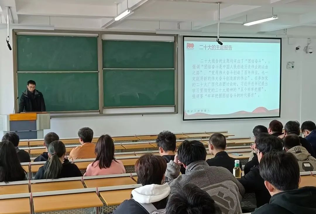 2023年3月3日,酿酒工程系刘旭波老师讲述了党的十九大以来五年工作的重大成就,回顾了新时代十年的伟大变革,让同学们在新时代的伟大成就中深刻感受到百年大党正青春、新的征程再出发、万众一心齐奋斗的宏阔气象。刘旭波老师谈到“少年的梦不止于心动,更应付诸行动”,引导同学们主动将个人的奋斗融入国家和民族的建设中,积极将个人的命运与国家和民族的命运密切联系起来,做心中有阳光,眼中有希望、脚下有力量的新时代青年,以成长之我、奋斗之我,为民族复兴之路铺路架桥,为祖国未来建设添砖加瓦。