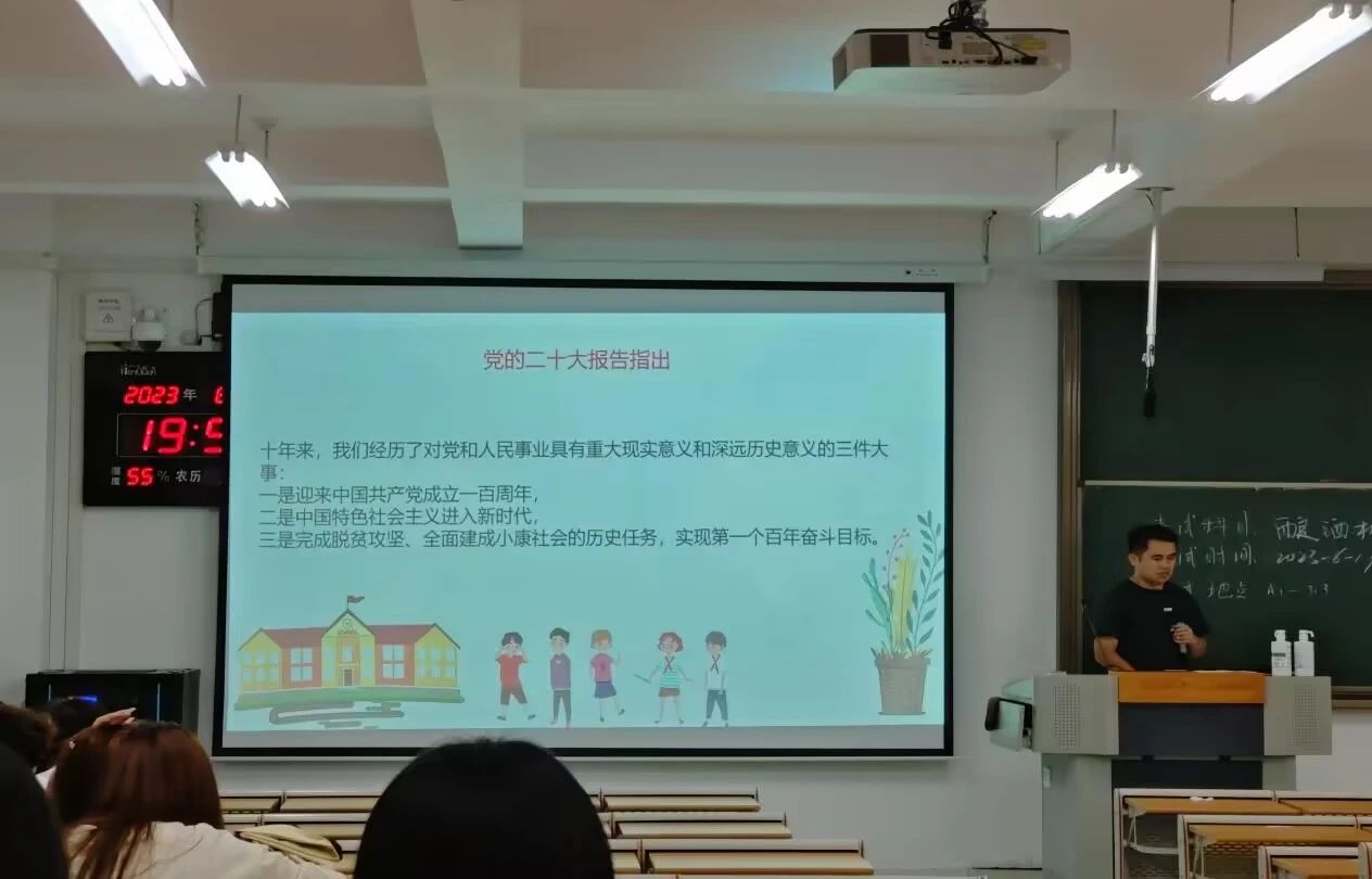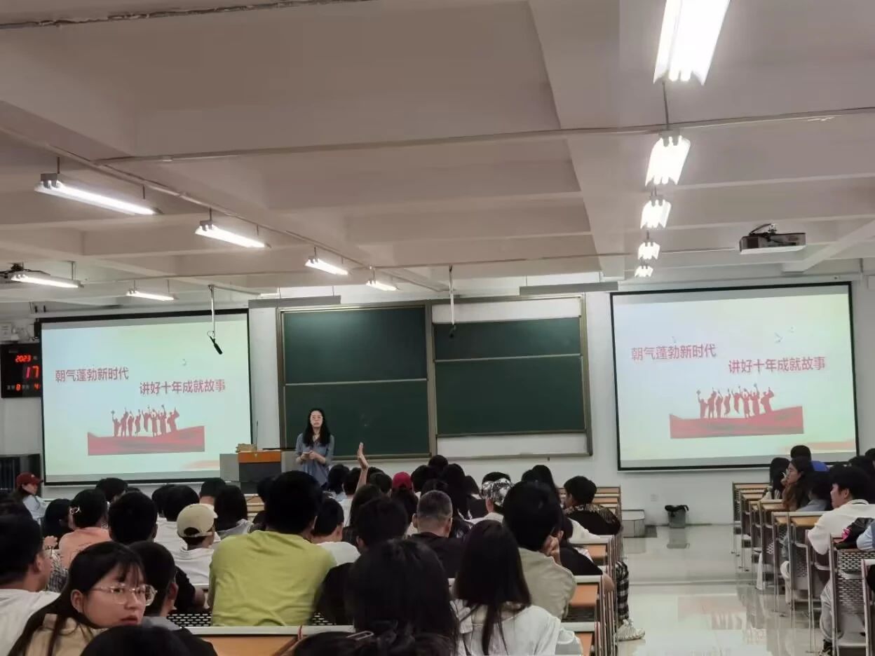各系通过观看视频、辅导员讲解、学生分享、畅谈感受和认识等方式,围绕党的二十大精神,重点讲授和学习了十年来,对党和人民事业具有重大现实意义和深远历史意义的三件大事。了解了贵州的高速发展,在理论学习和现实感知中引导大家用心感受新时代十年的历史性成就和历史性变革,牢记习近平总书记的嘱托,立志做有理想、敢担当、能吃苦、肯奋斗的新时代好青年,踔厉奋发,续写青春华章。