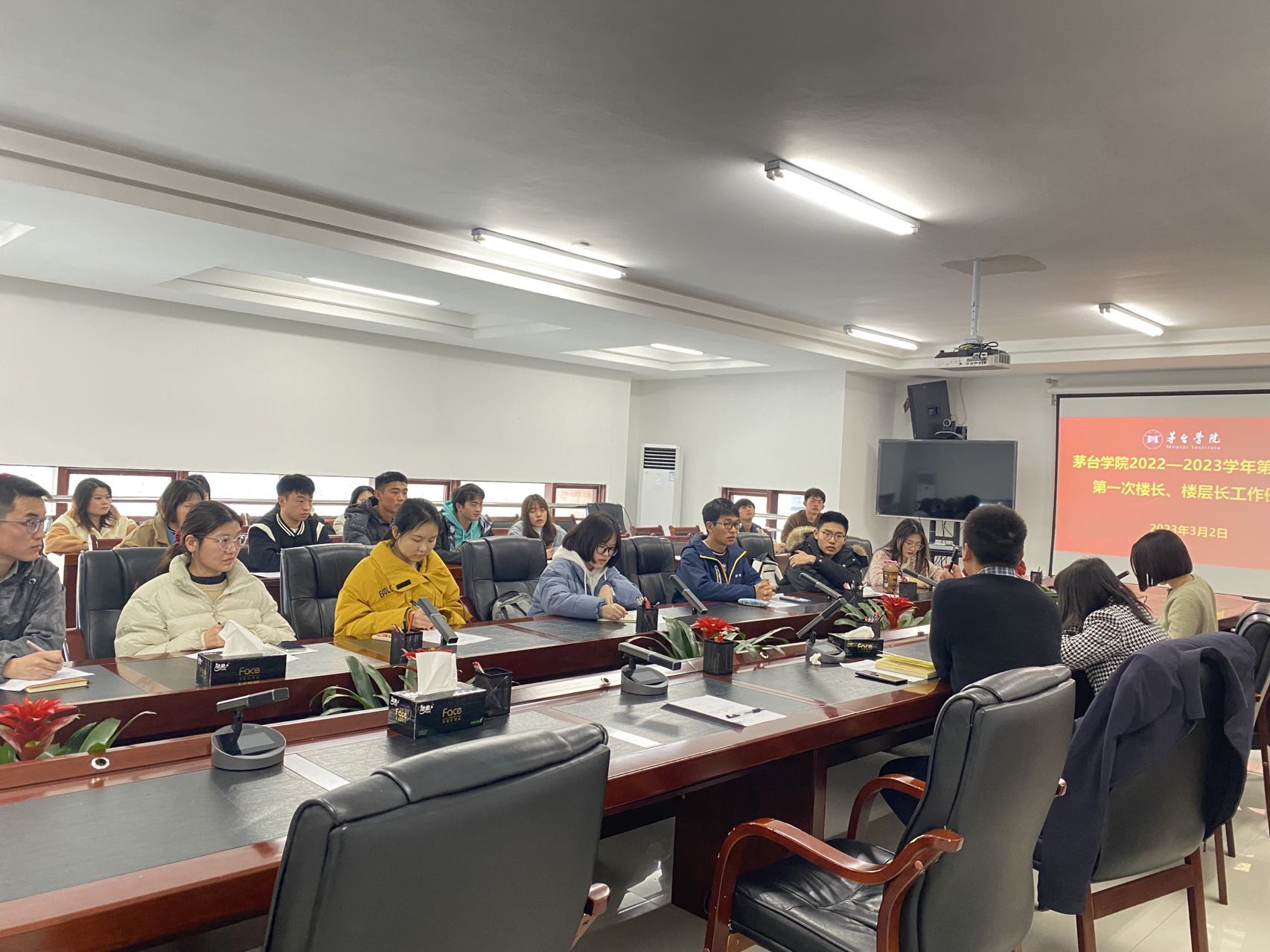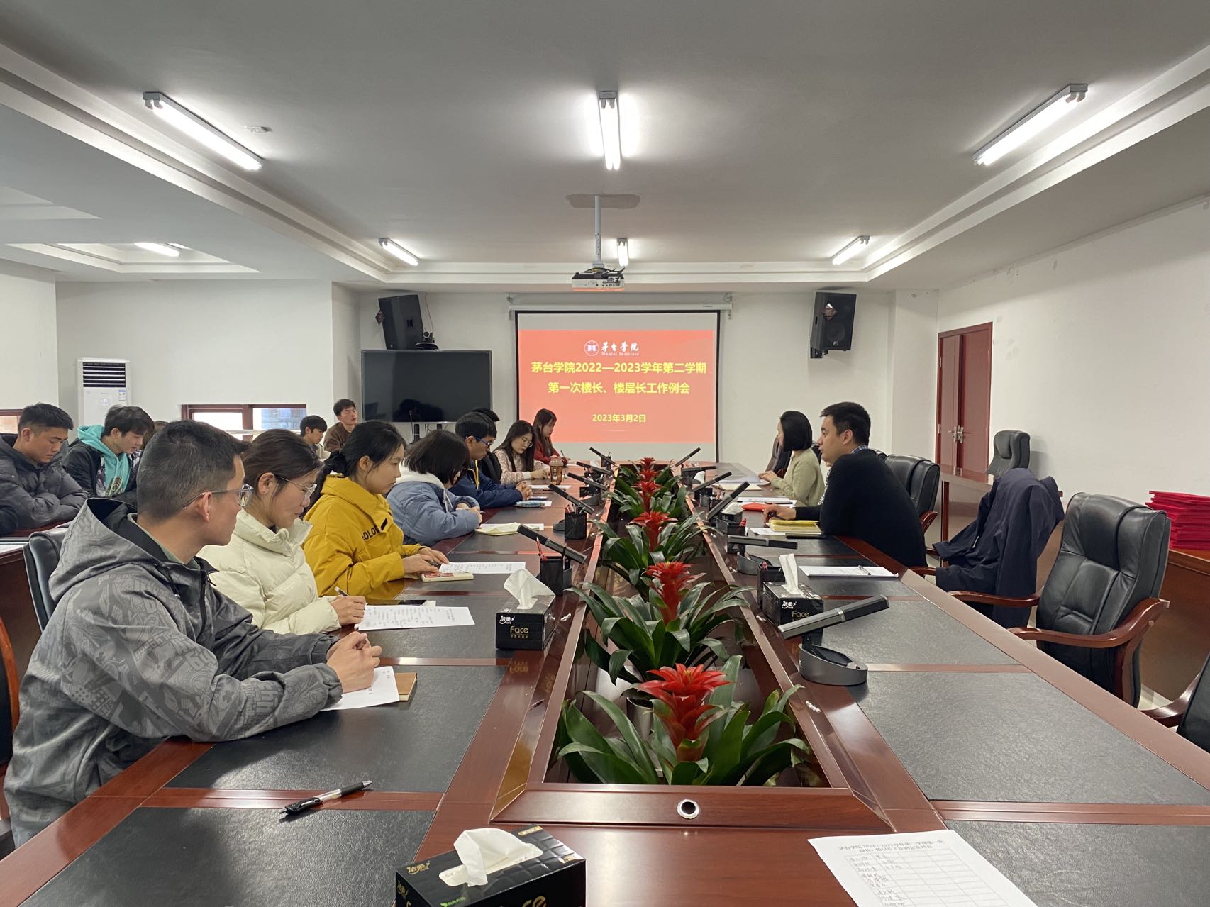 会上,各位楼长、楼层长汇报了近期管理区域寝室动态及相关问题。学生工作部老师提出本学期“三长”管理工作重点。