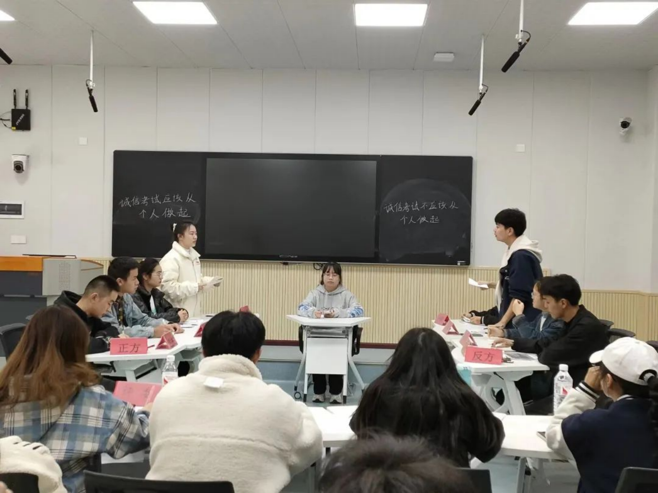 认真做好“考风考纪诚信建设月”活动,举办了“厚于德·诚于信·敏于行”主题系列活动,主要开展了面向不同年级学生举办求职就业主题交流会,帮助同学们发现自身的兴趣爱好、求职要求,通过借鉴学长学姐们的经验,找到自己的努力方向,引导同学们做好职业规划;开展“厚于德·诚于信·敏于行”主题新老生交流会,发挥朋辈引领作用;举办“厚于德·诚于信·敏于行”主题辩论赛,让同学们灵机应“辩”,在辩中学,于辩中思,辩出智慧的火花,辩出向上的人生。