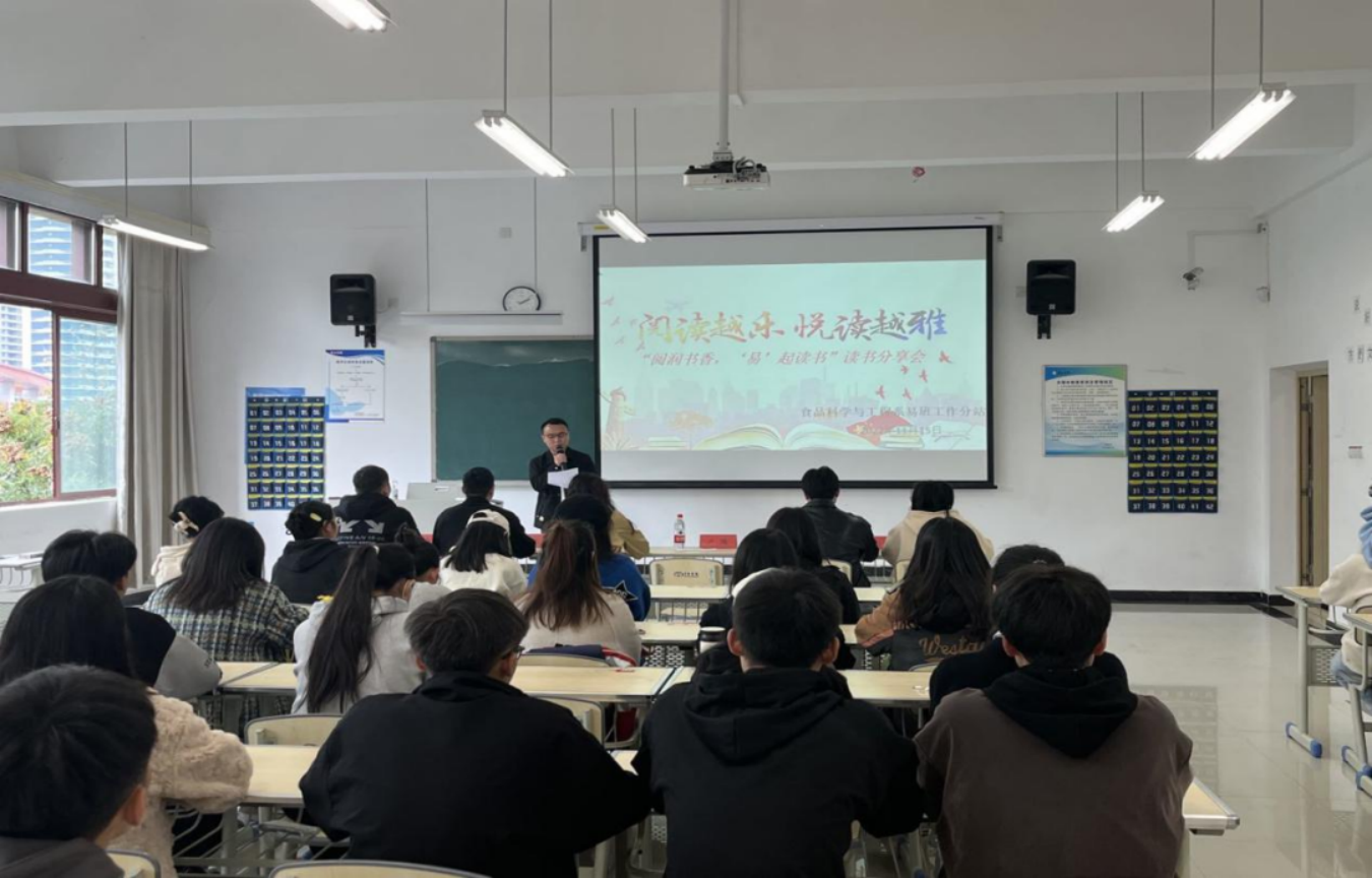 为激发学生的读书热情,引导学生养成良好的读书习惯,提高学生的读写能力及综合实践能力,同时丰富学生的文化底蕴,食工系易班分站于11月15日举办了“阅润书香,‘易’起读书”分享会。