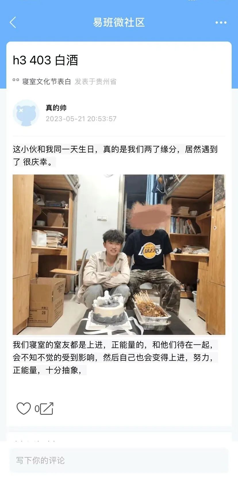 “我的好室友”板块中,大家仿佛打开了记忆的闸门,仔细回忆了相处的点点滴滴,在稀松平常中发现身边美好,在回首往事中搜寻动人瞬间,重启内心珍藏的感动,在易班app尽情向室友表白,用真挚细腻的文字记录下了一起经历的美好和当时的心情。有对初见时顶着烈日陪伴报道的室友的感谢,对同是室友又同一天生日的缘分感叹,也有同在异乡真情陪伴彼此的珍视,还有对优秀室友的肯定和赞美……