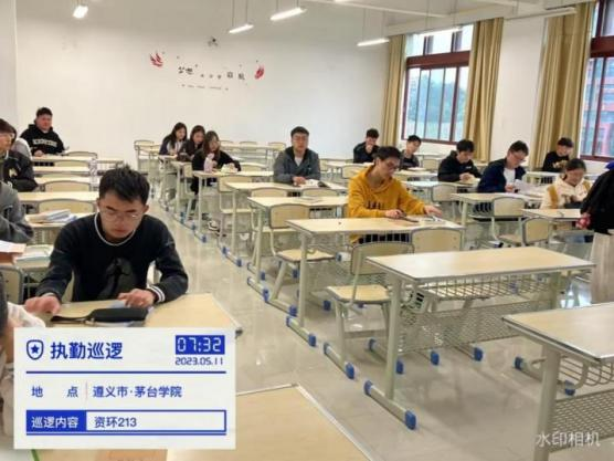 由系学生会学习部组织,辅导员、辅导员助理及志愿者组成的督查小组进行全覆盖课堂巡查,通过学生检查学生课堂,发挥学生自我管理、自我服务、自我教育、自我监督机制。落实学校晨跑、晚自习制度,制定晨跑、晚自习时间,学风督察员对晨读、晚自习进行全覆盖检查。