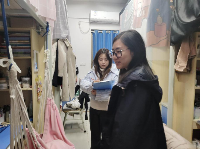 系领导、各年级辅导员组成寝室检查小组,结合每月日常检查、开学初、期末离校前、重大节假日前深入学生寝室查寝约86次,检查学生寝室卫生、违规电器、晚归等情况,学生寝室整体卫生状况良好,个别卫生差或使用违规电器的寝室已督促学生整改。同时深入寝室关心关爱学生。引导学生营造生活习惯好、卫生环境好的寝室环境,鼓励学生保持卫生干净整洁,争创星级文明寝室,培养健康、自律的生活习惯。